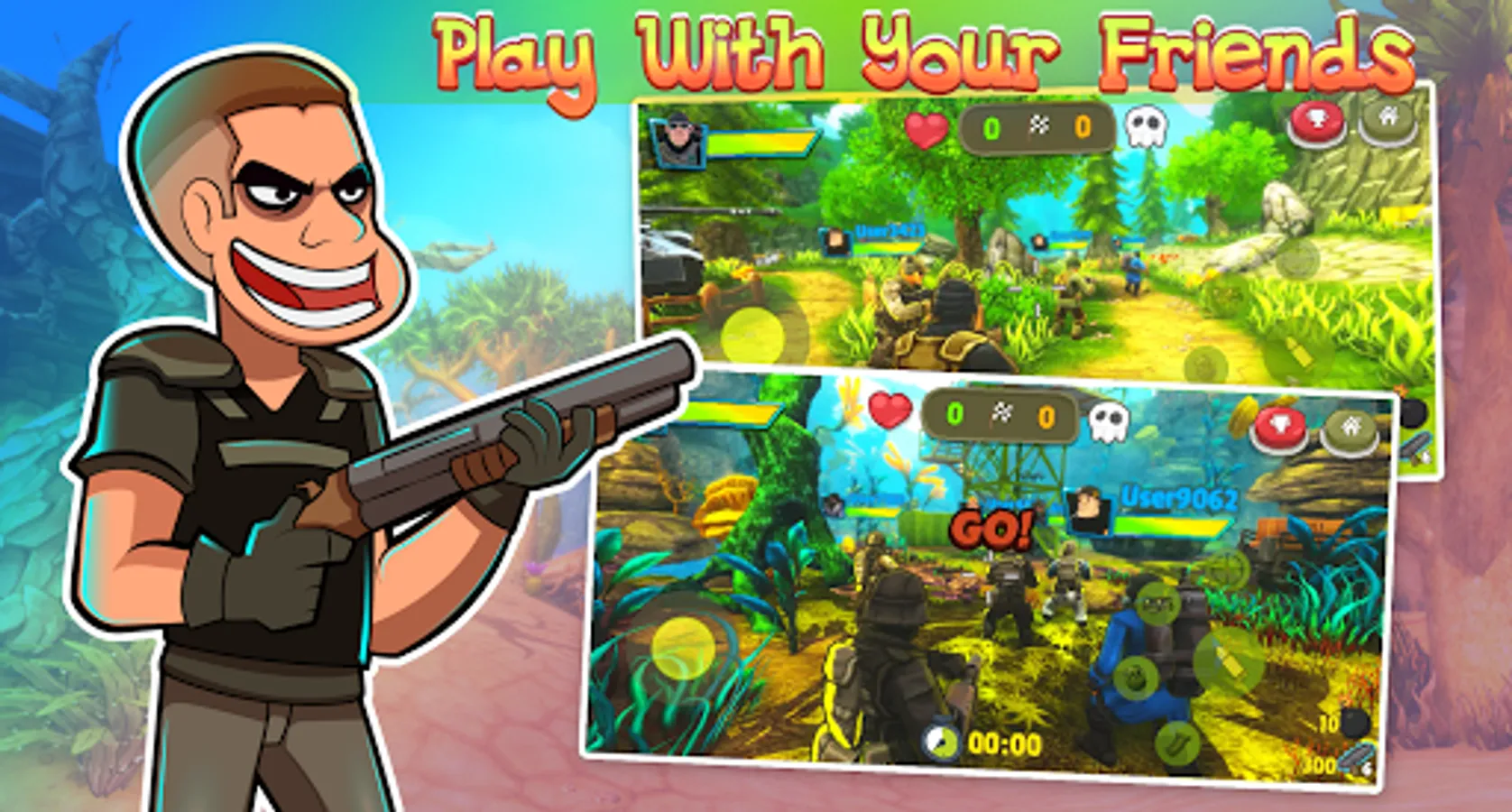 Choose your unique character and weapons from tons of different characters and weapons of different classes and styles (Assault, SMG, Sniper, Shotgun, Knife, Pistol, Grenades, LMG, Heavy Machine Guns, Grenade Launcher, Laser Pistol, Water Gun , Electric Gun, Lava Gun, Flame Thrower....) each one with special properties. Customize your own and unique fighting skills and jump into the action, enter the battle and engage in team online PvP combat against other players around the world on a variety of maps.