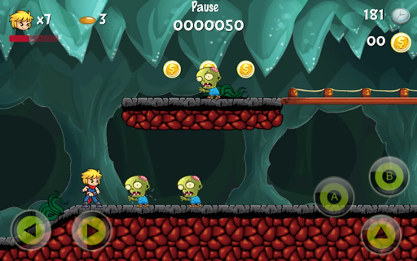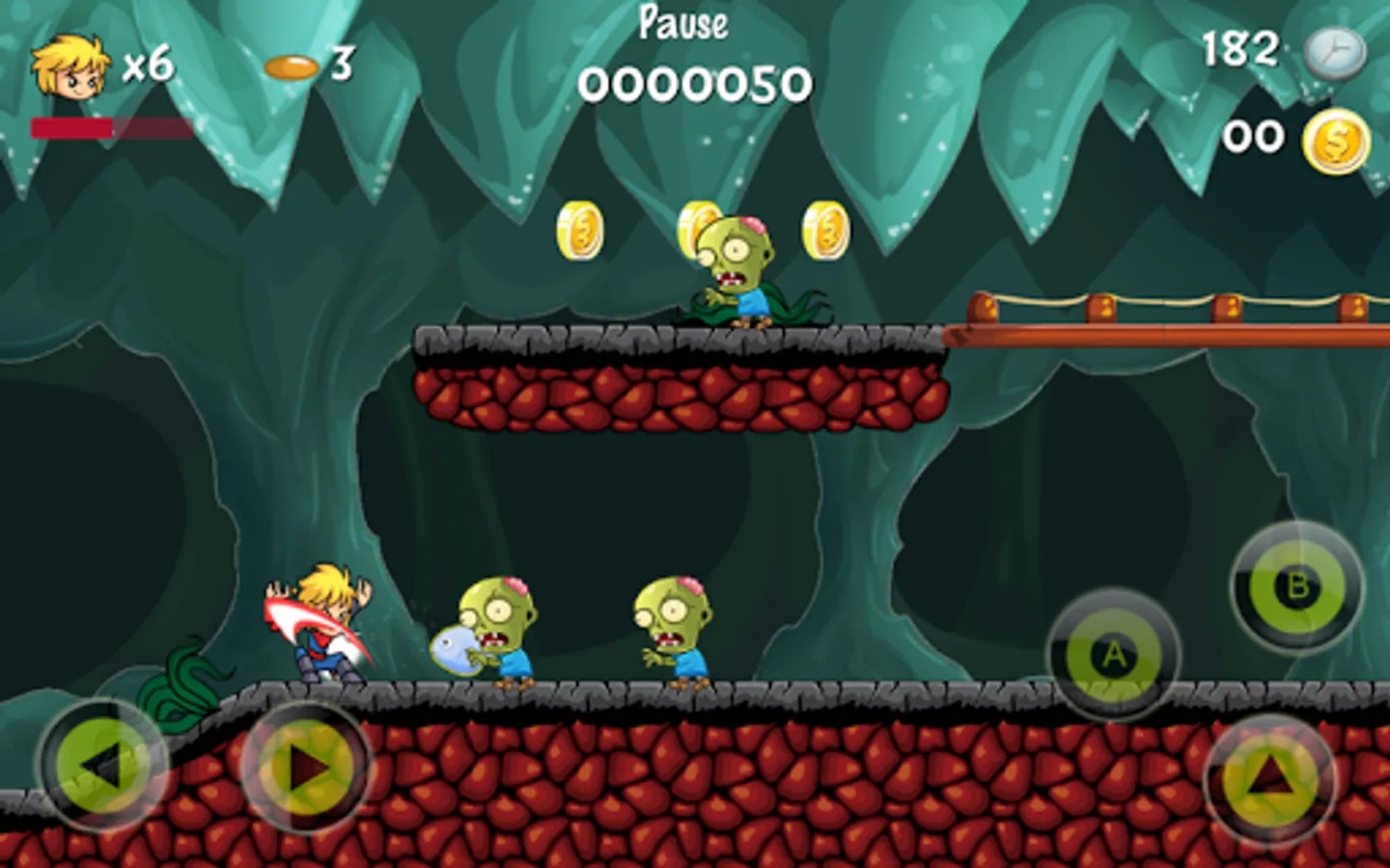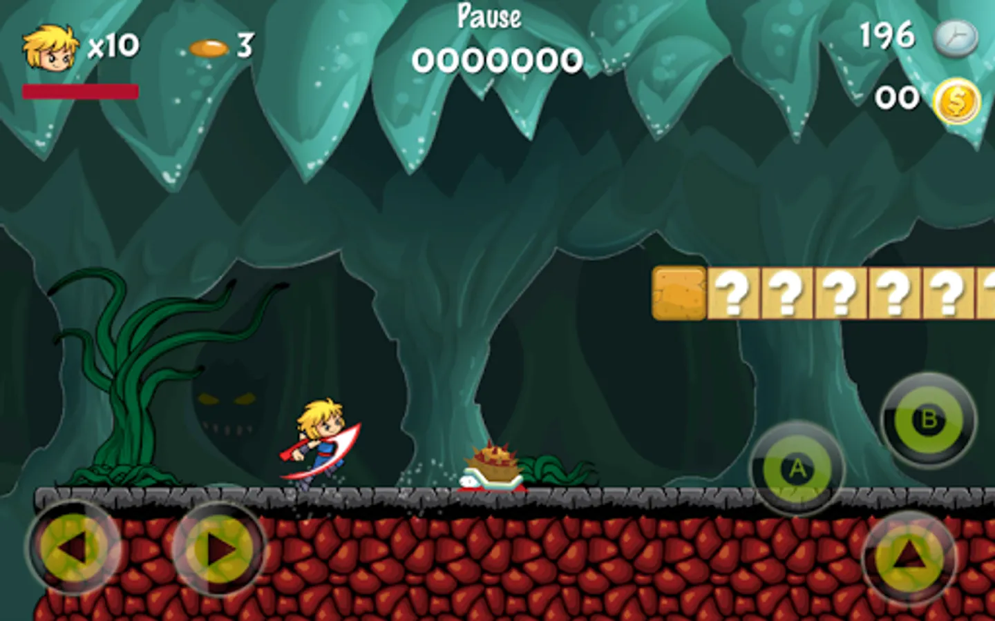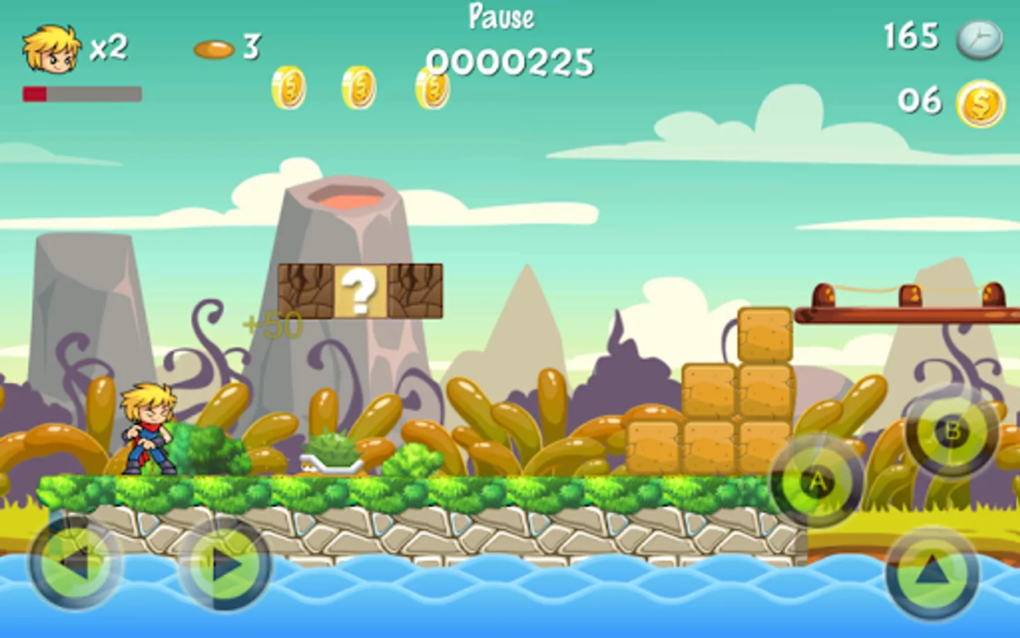 Control buttons to run, jump blocks and explore the arcades. Travel across dangerous jungle, desert, machinery base, etc. Collect coins, gold, acceleration props to help you defeat the Monster!