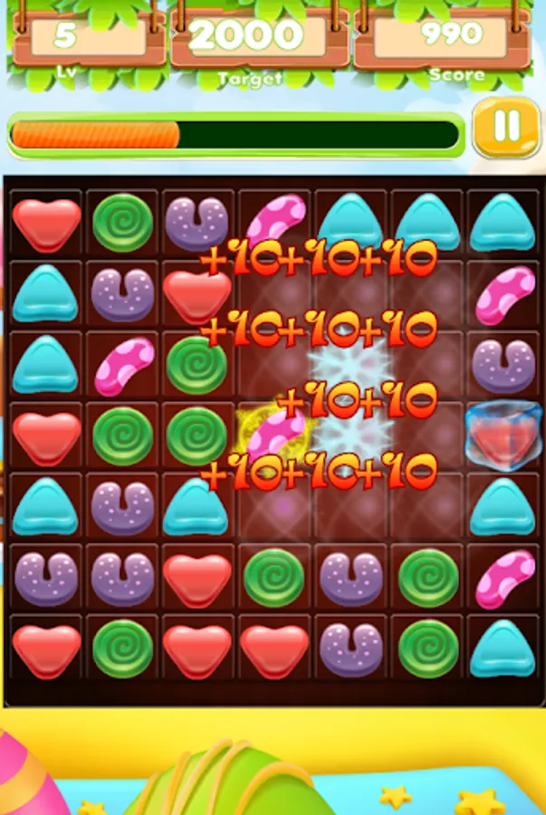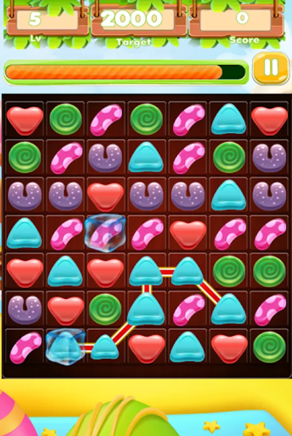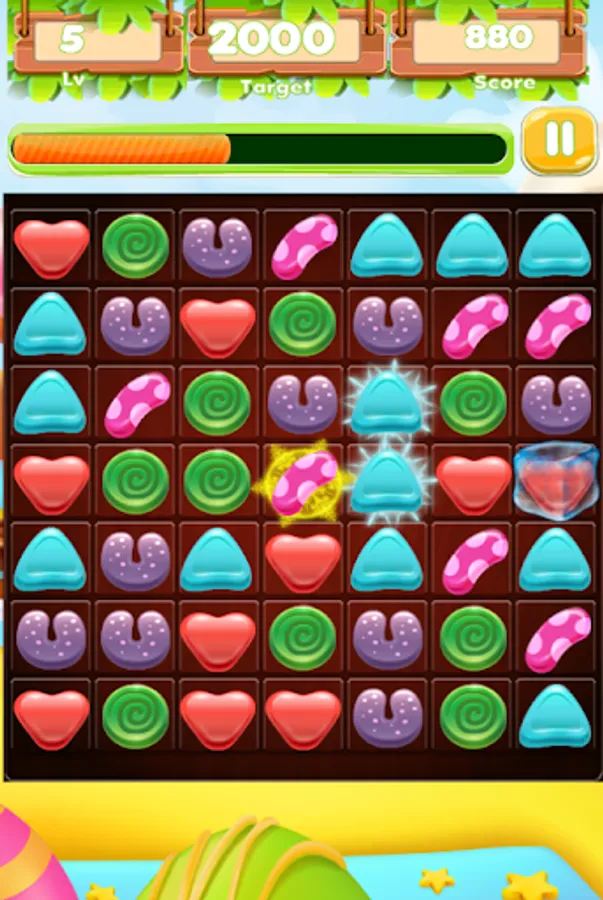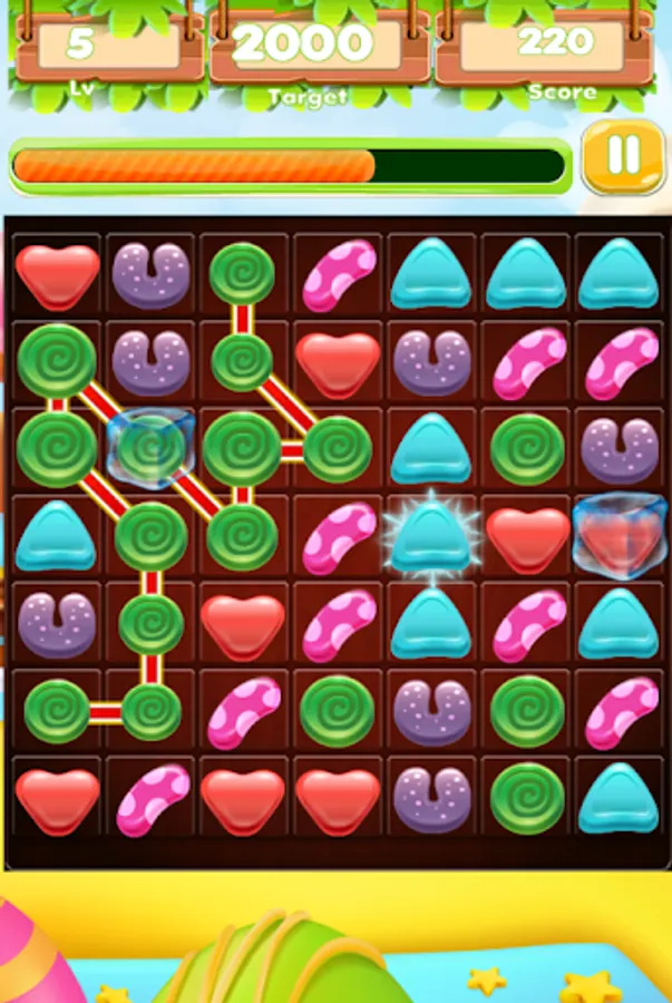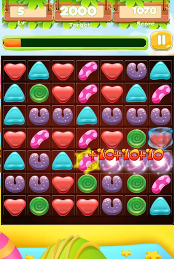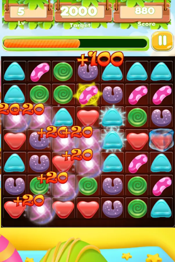 Playing method: match the same color Candy (at least 3 same Candy), you pass the challenge when you get requiring scores at each level.