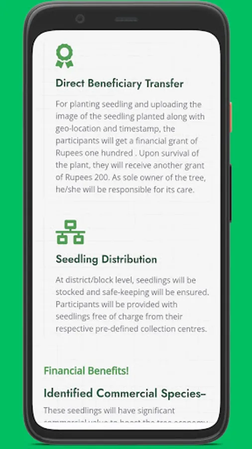 4. Financial grant of Rupees 100 will be given as Direct Beneficiary Transfer after planting the seedling and uploading the image onto the portal.