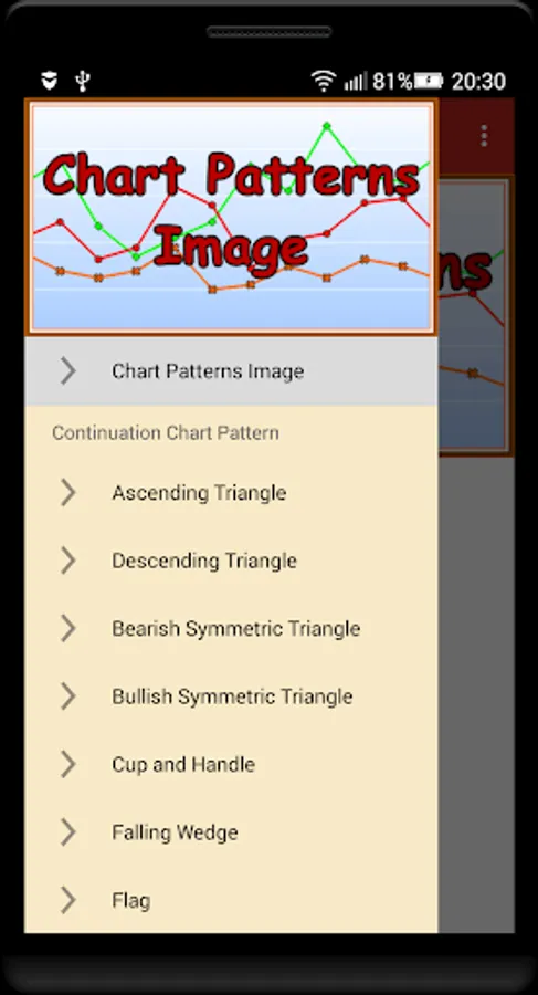 Trading Chart Patterns Image is a simple Android Application which presents the most important images of chart pattern and its target price.