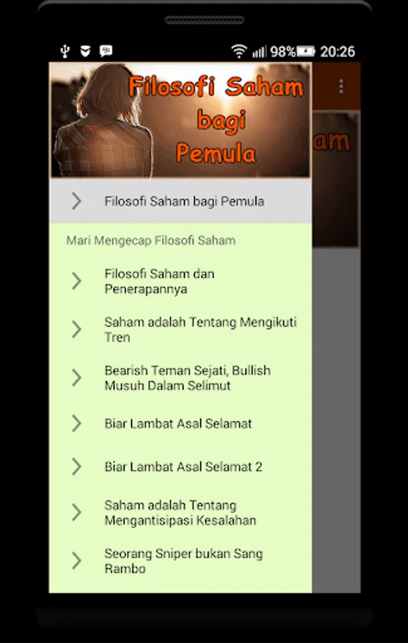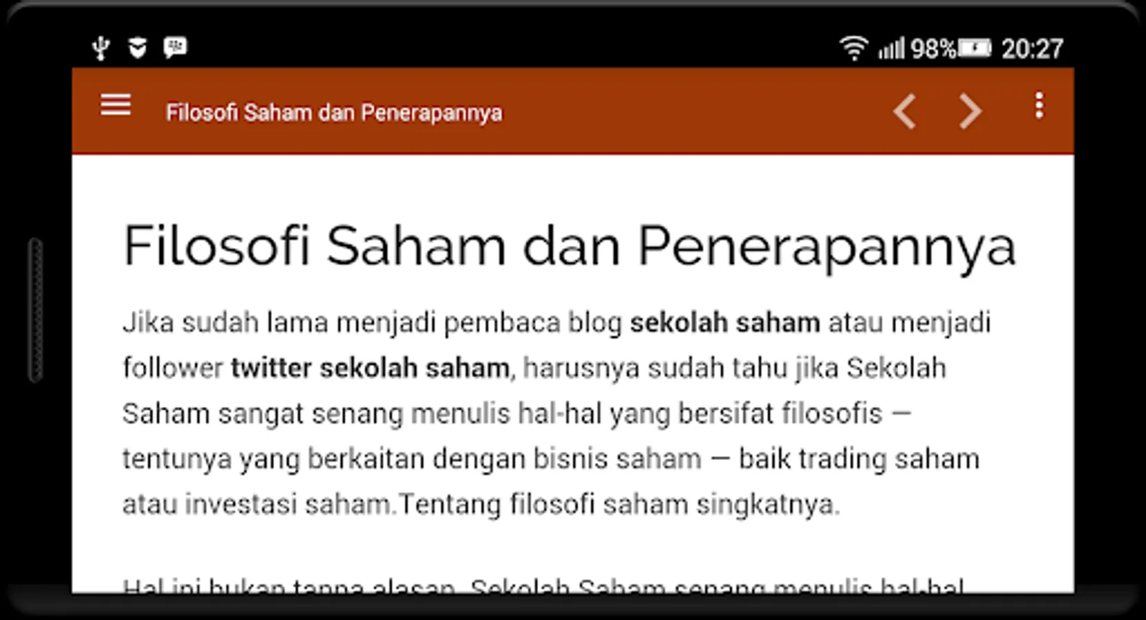 Philosophy Stocks for Beginners is an Android application that contains 30 articles related to the philosophy of Shares which is very important to be understood by beginners in the stock business - both stock trading and stock investing.