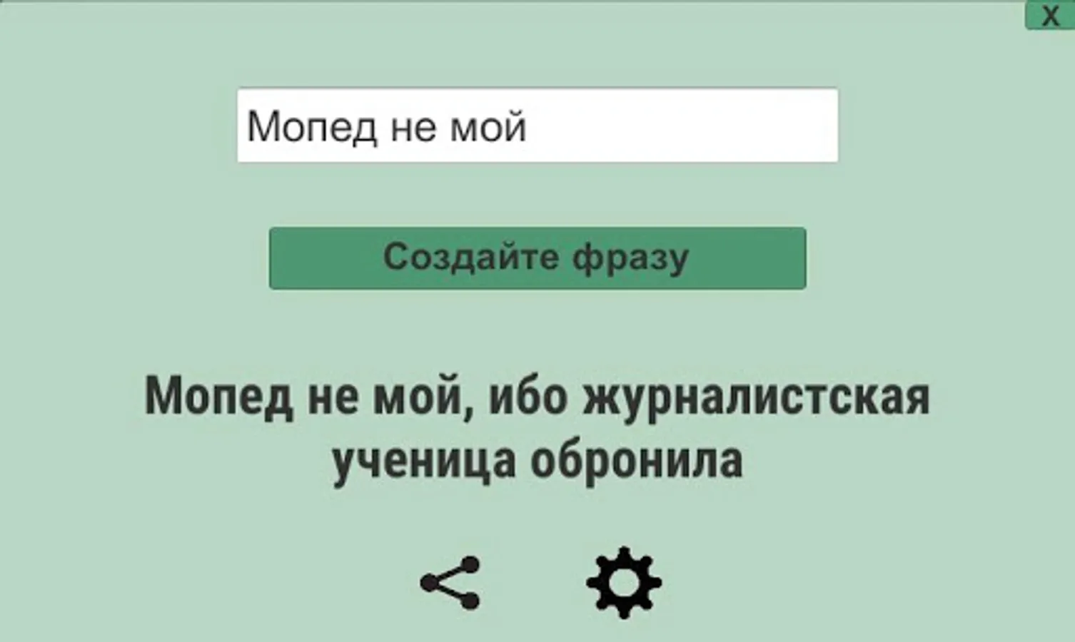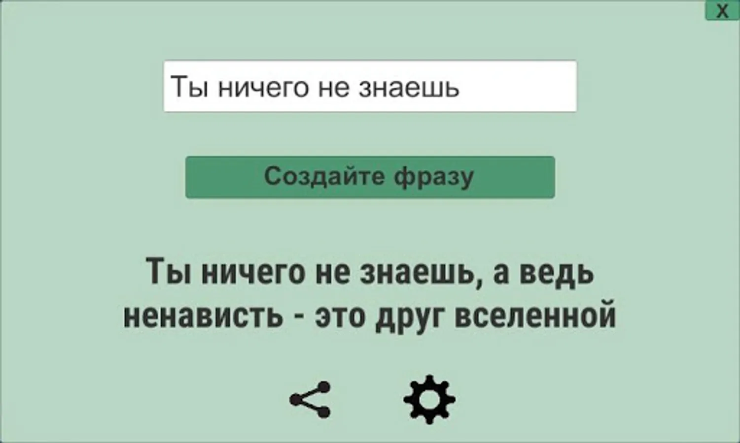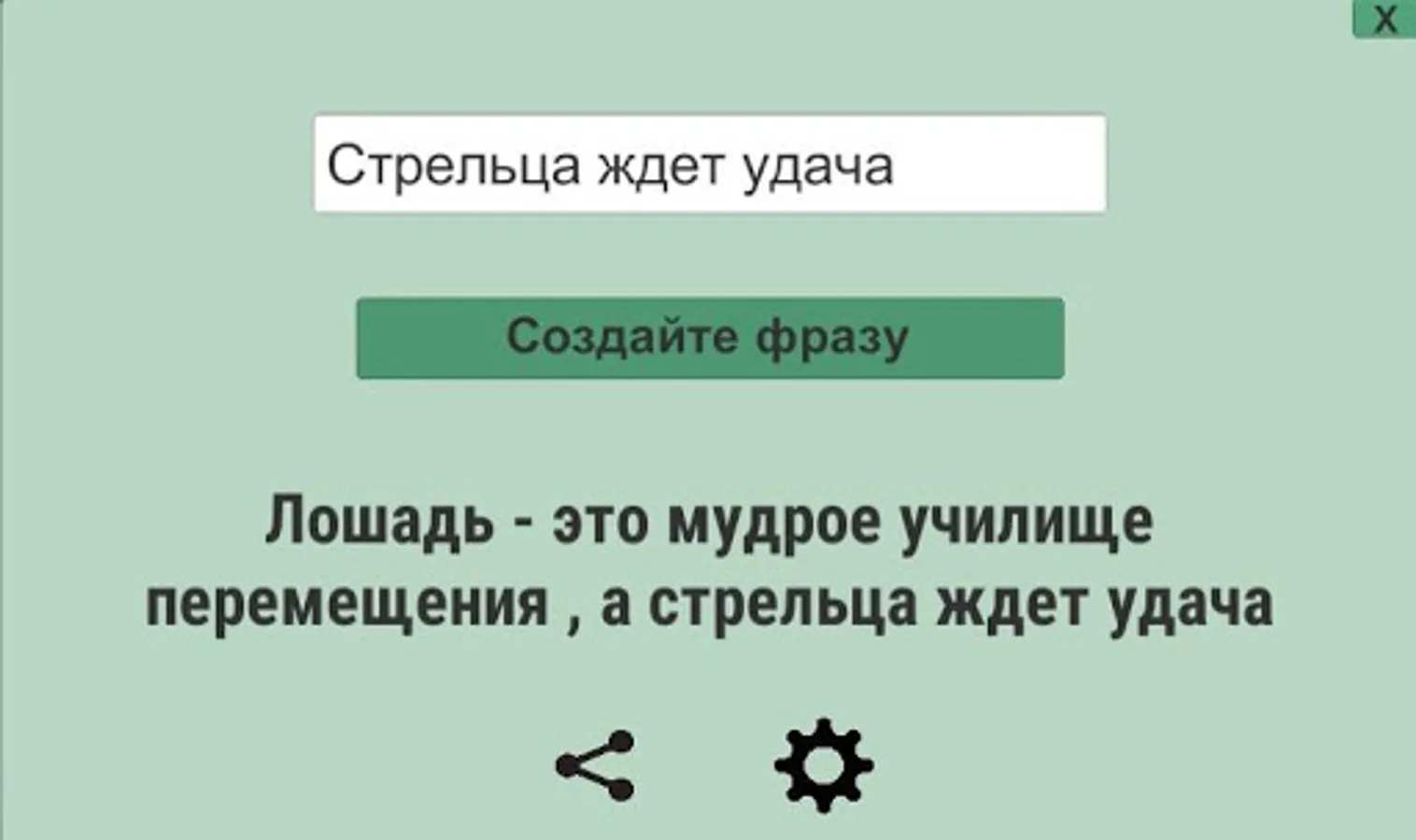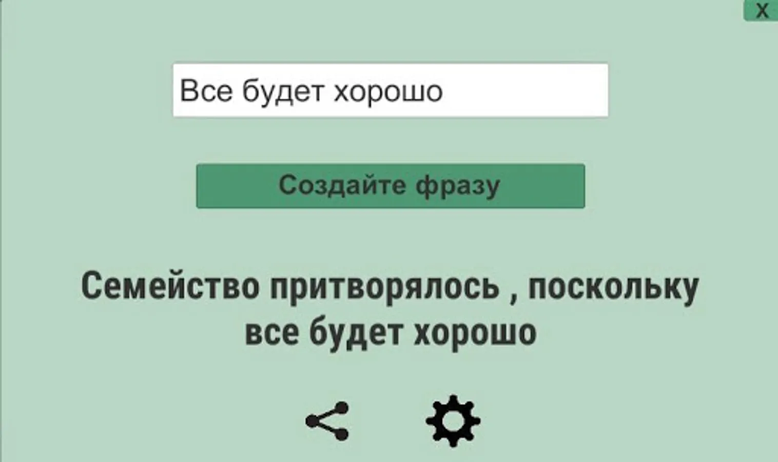 You enter a few words, click "Create a phrase" and ... a randomly written sentence appears! Sometimes this is a profound utterance, and sometimes a short description of some imaginary events.