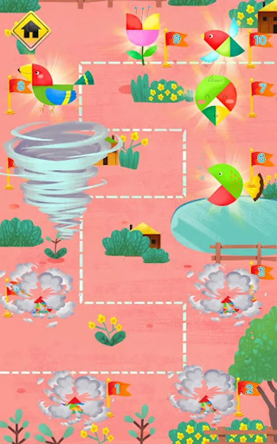 You can learn "shapes" one of the five main content areas for the primary mathematics curriculum. Lets' recover the broken parts of the town using the heart puzzles! If you solve the given puzzles, the broken part will be restored with its original shape. Let's solve puzzles for the broken parts in 6 towns and get items to complete better characters!