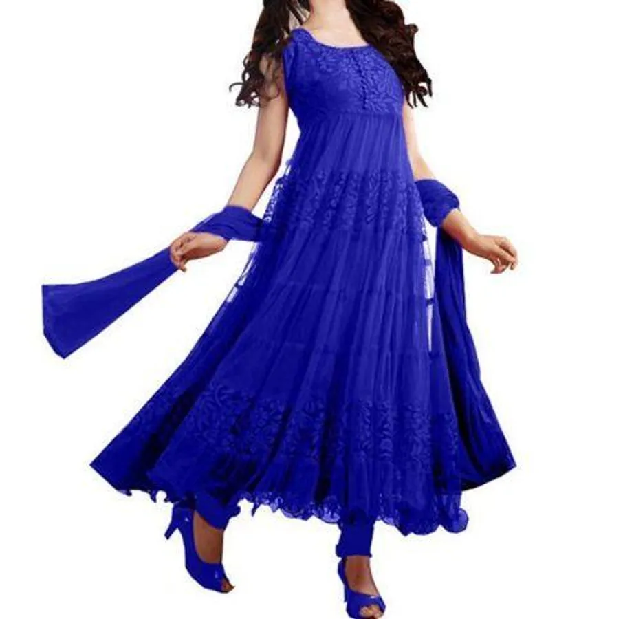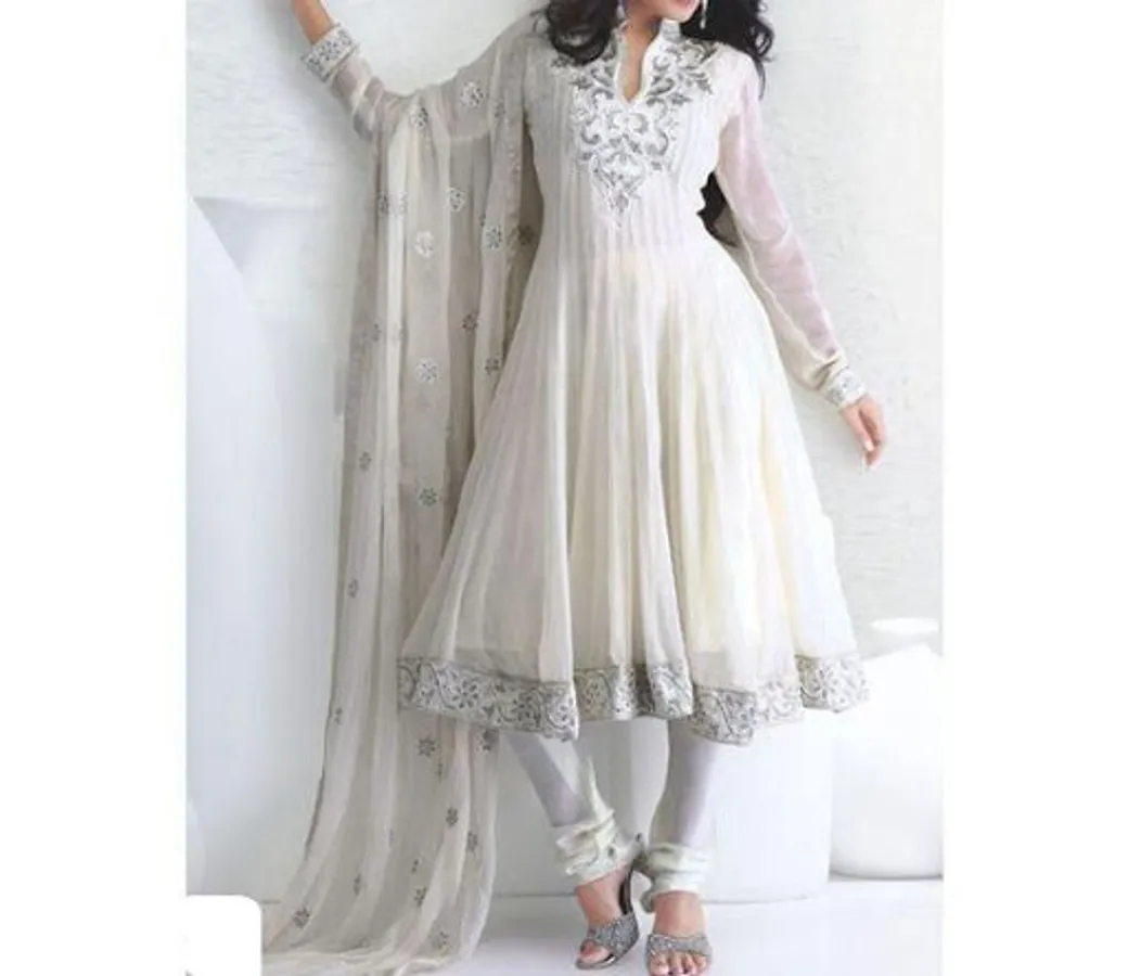 The Anarchali fits are designed in beautiful fabric varieties such as nets, georgette, velvet, cotton, silk and crepe glammed with fancy embroideries-including zari work, heavy lace work, resham yarn work and more to give a royal look to the lawsuit.