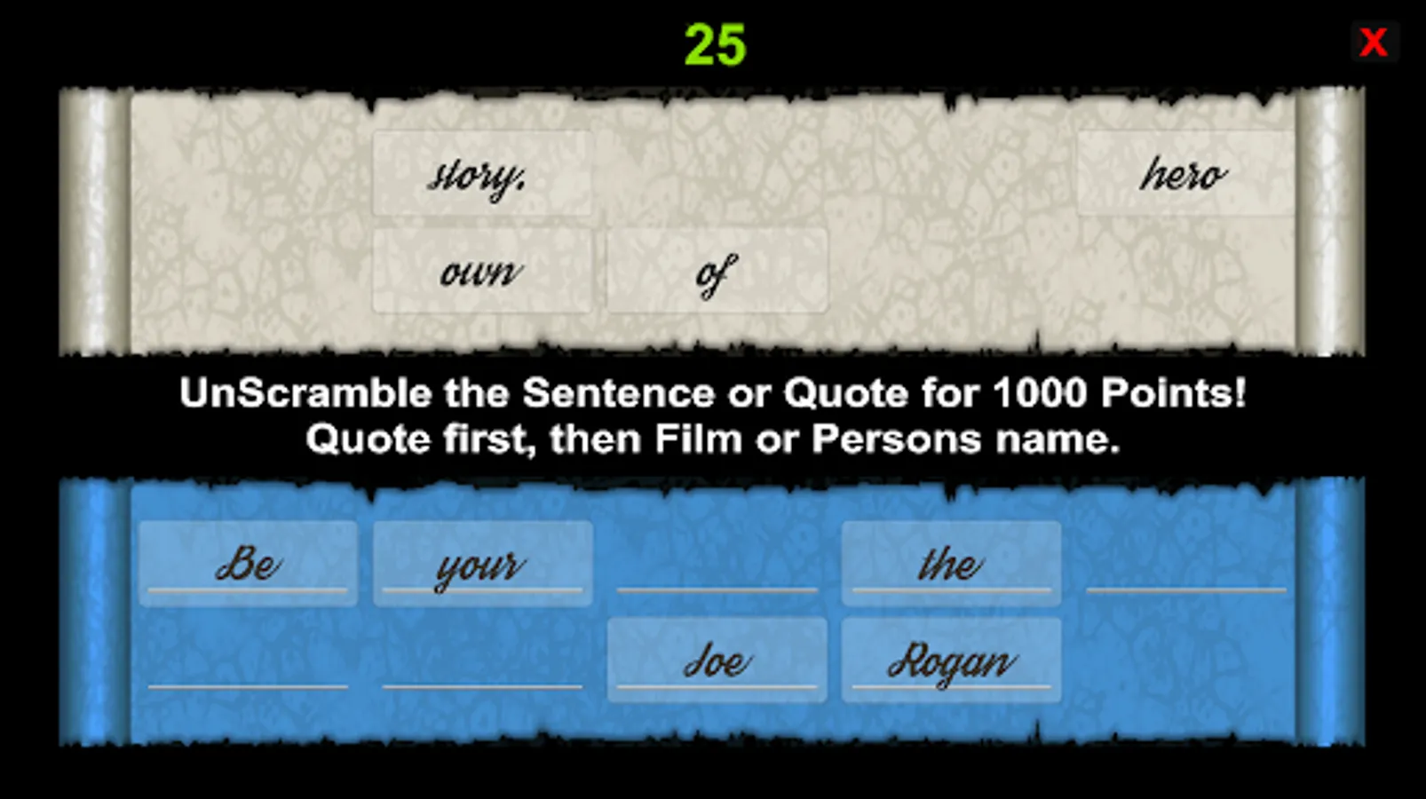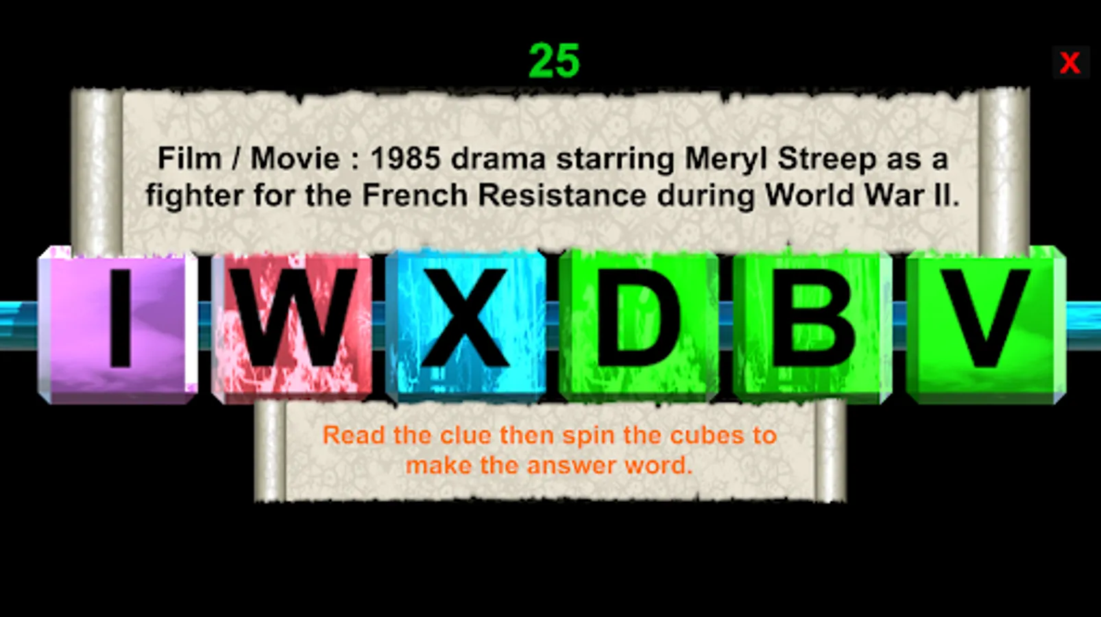 Quote Unravel, Question Spin, Type Mania & 3 Letter Cube.