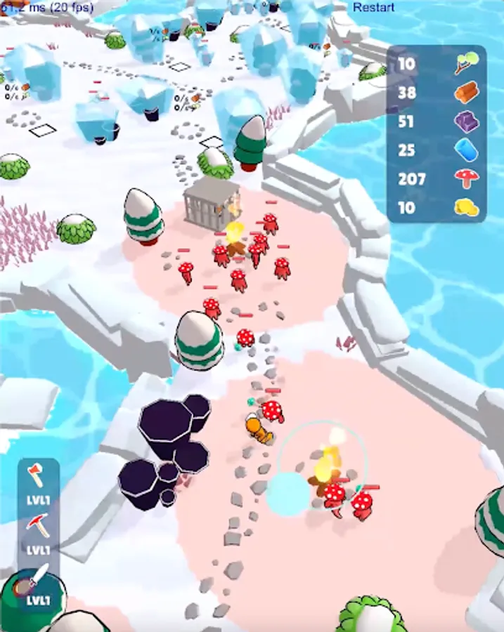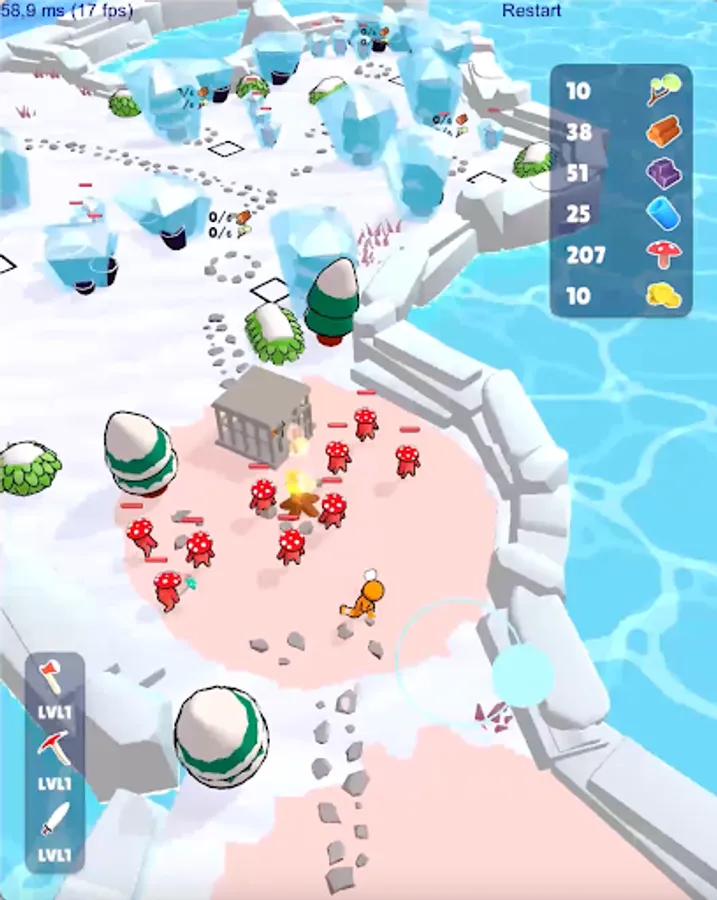 As a pilot stranded in a frozen world, chop trees and gather resources to light campfires and unfreeze obstacles. Unlock new areas by thawing elements, unraveling mysteries, and saving your wife from your home. Face challenges like rescuing a survivors from Shroom people who serve the Pig King's Prince.