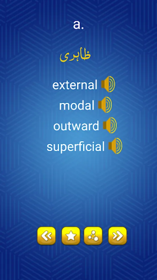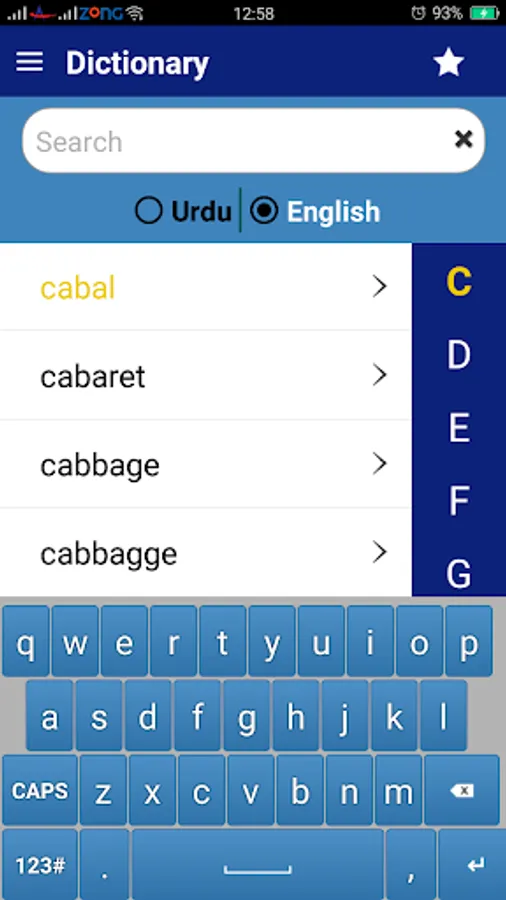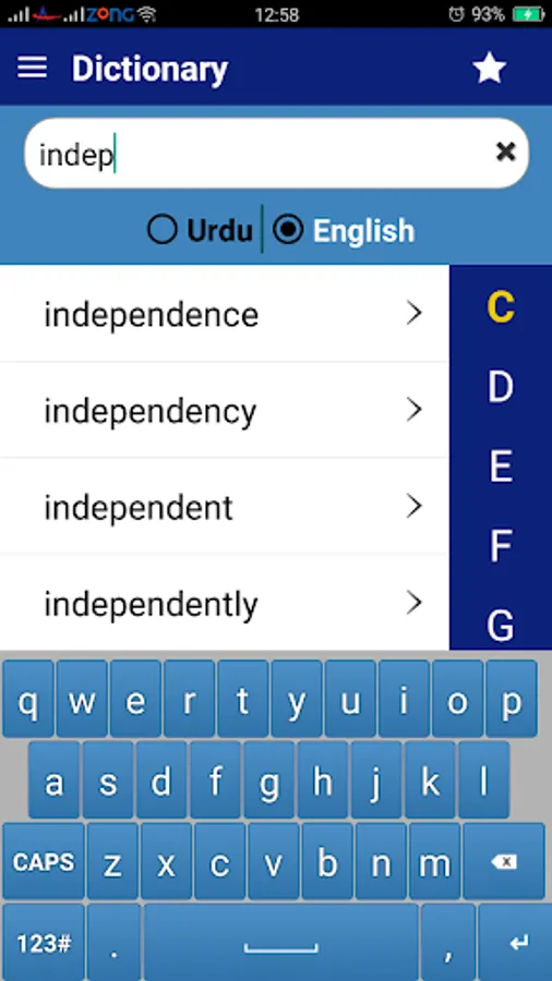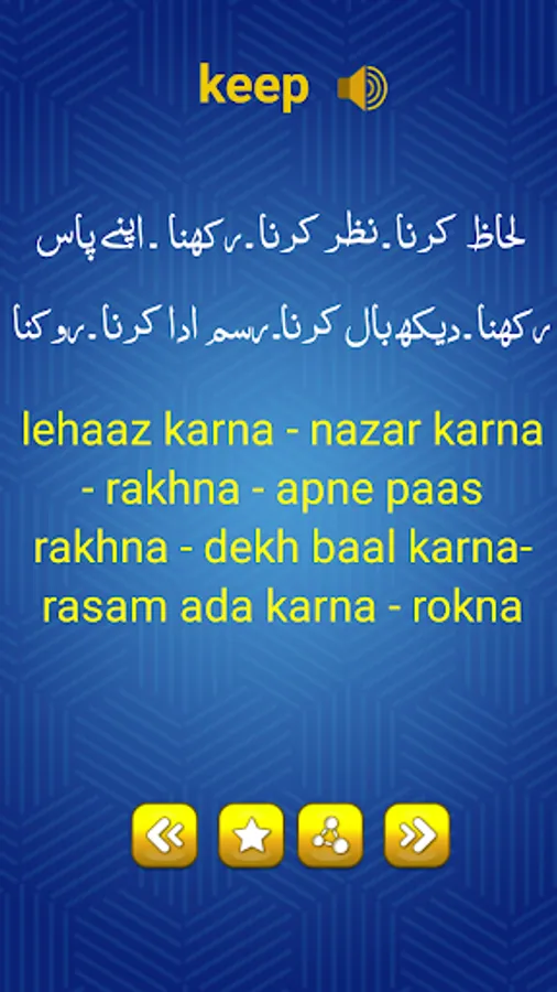Search English Words meaning in Urdu or Urdu Words meaning in English in one Application. Easy Urdu English Dictionary has huge words collection in English and Urdu. Smart Auto Urdu English Searching, Complete Words list sorted Alphabetically, You can choice any alphabet and see all words in the list that starting from alphabet that you choose, Built In English and Urdu Beautiful Keyboard, Word Sharing Feature, Create your Favorite Word List, (English and Urdu List Managed Separately), American Audio Pronunciation and Much More. Every One Must Download this Easy English Urdu Offline Dictionary.