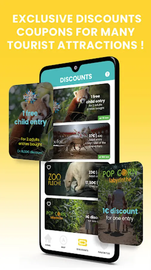 Find discounts coupons for many tourist attractions ! Make sure that your location services is « ON » to find the closest around you !
