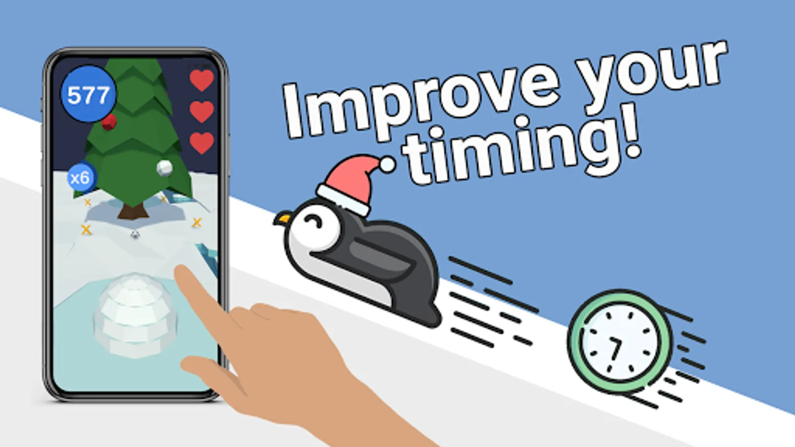 Make the highest combo to reach the santa penguin! Only the best can reach it.