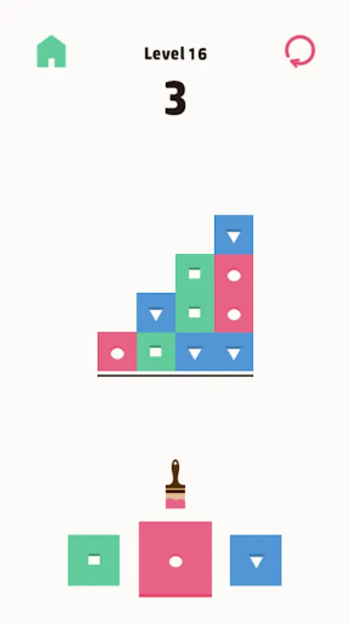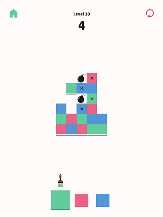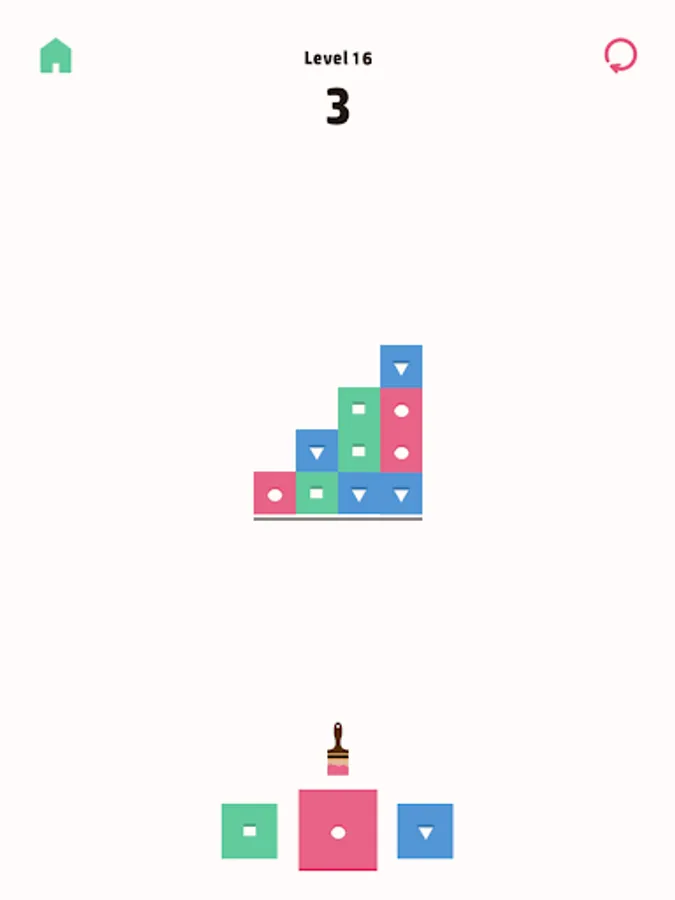 The game starts simple, you are given three colors to paint tiles with. As you gain the skills necessary to solve increasingly challenging puzzles you're faced with new mechanics - dissolving ground, bombs, rainbow tiles, all of which make you think in new and interesting ways. Paintiles is a must-have for puzzle lovers!