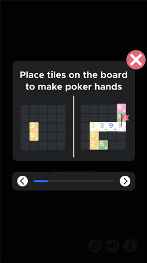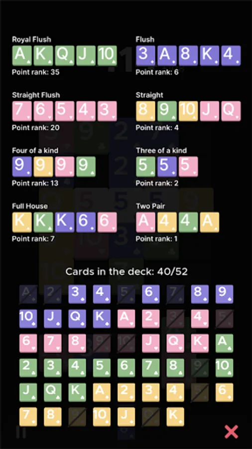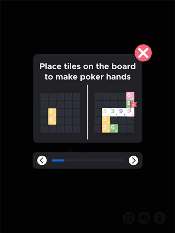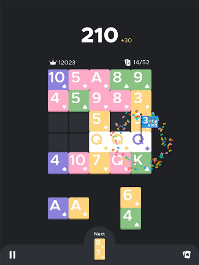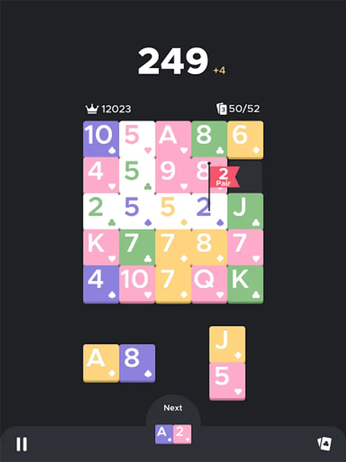 Poker Pop is a domino style tile matching game where you place cards onto the board to create poker hands. Score as many points as you can before filling up the board.