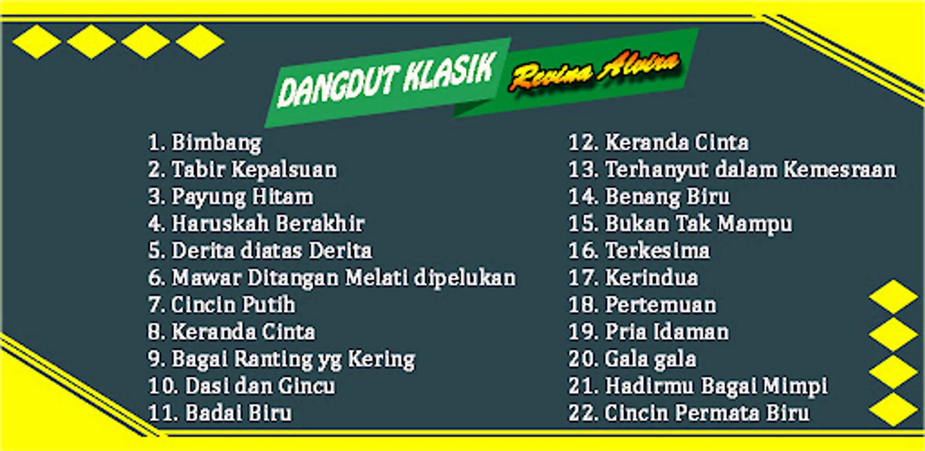The Revina Alfira Classic Dangdut application is an audio player application that collects classic songs that are full of memories, with Revina Alvira's caver adding that classic songs are very popular with both young and old alike.