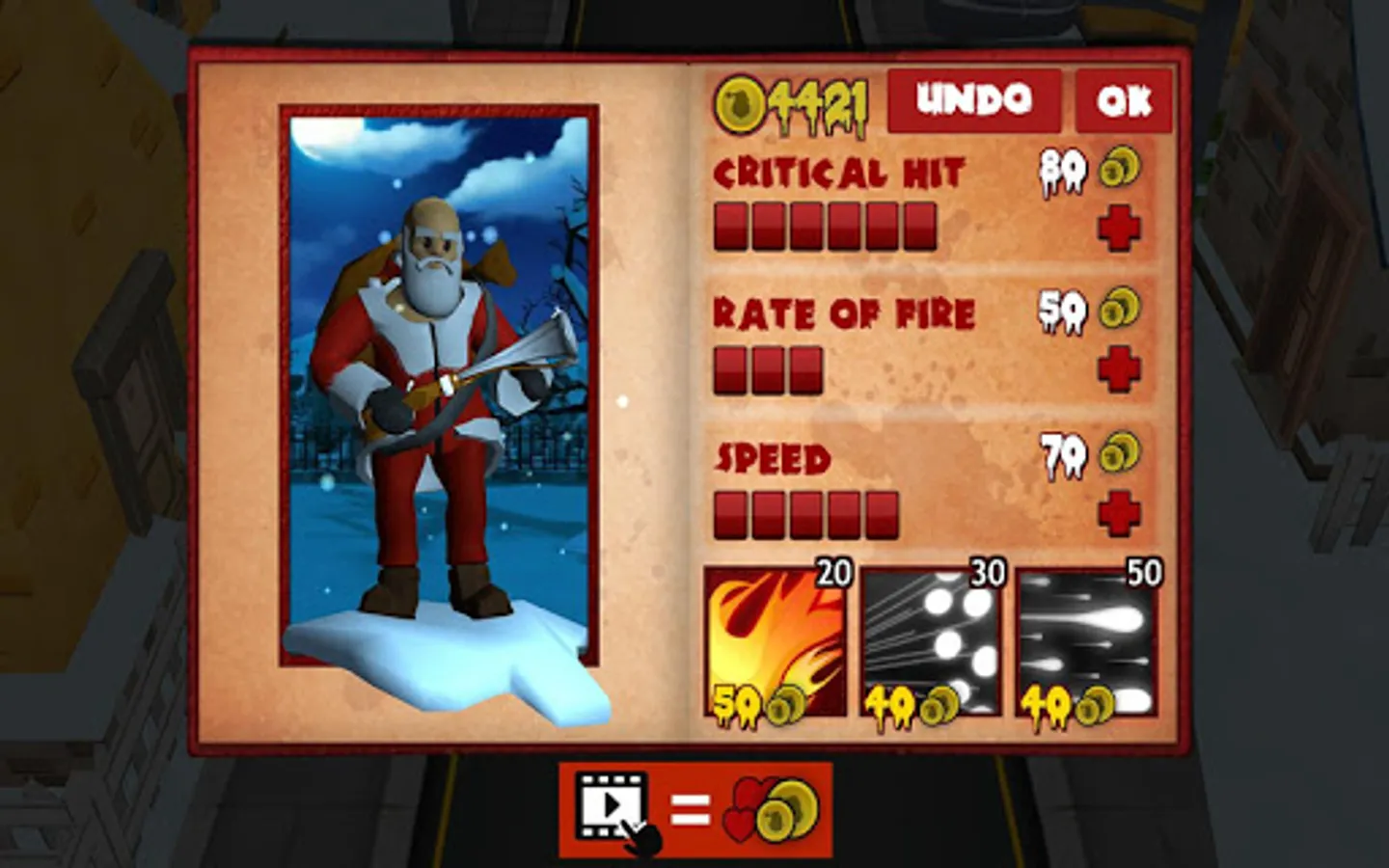 - Upgrade Santa's skills and buy new weapons to help you on your mission.