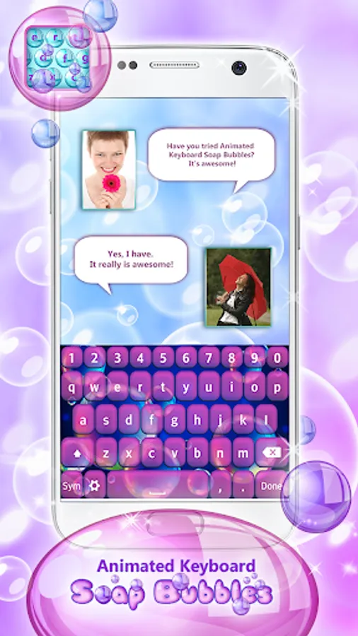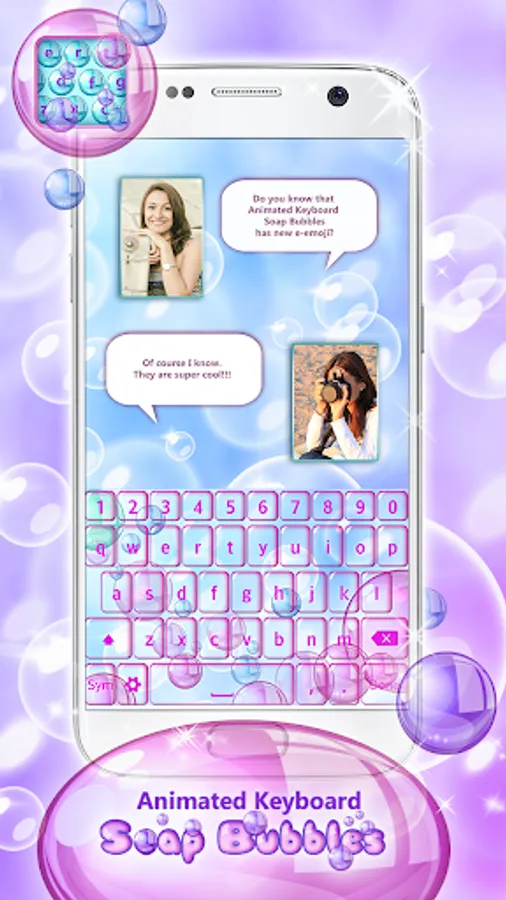 📱 Don’t wait any longer to grab our perfect product because with this “bubble text keyboard” symbols you will never again need to wish for another one. This soap wallpaper will help you use cute emojis, funny smileys, text emoticons and stickers. It’s the best moving bubbles background with many beautiful themes, smart gesture type and auto correct, backgrounds for girls, stylish fonts and many languages. Have fun with bubble foam and share your feelings with your friends using “bubble emoji keyboard” skins! 📱