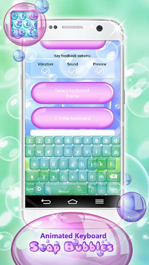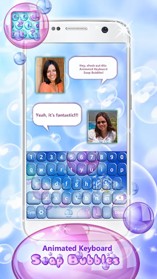 📱 The options for keyboard sounds and vibration, cursive fonts and cool text symbols will help you design your own keyboard in the most iconic way possible. Water “bubble keypad” app in all of its glory is just one click away! Thanks to our moving bubbles animation you’ll no longer have to consult different forums about how to create your own keyboard style. Don’t hesitate to download this free “virtual keyboard” and cover your screen with cute colored bubbles. Make a good entrance, decorate funny text messages and be proud with 💧 Animated Keyboard Soap Bubbles 💧! 📱