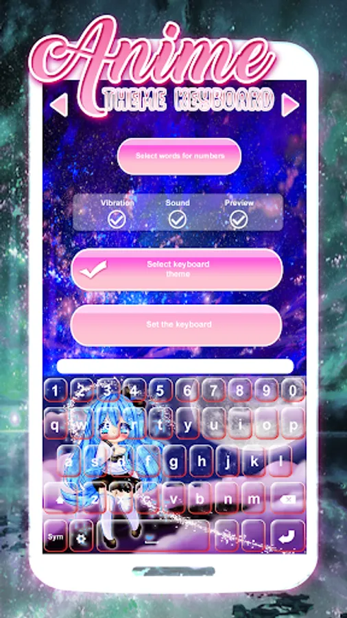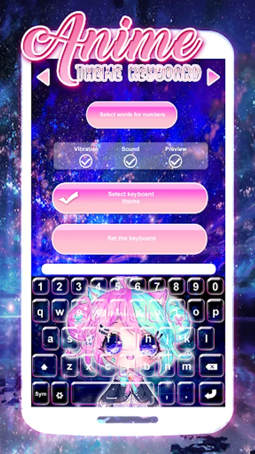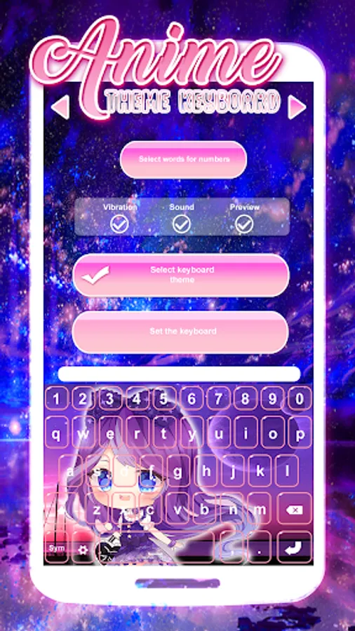 đź’–đź’› Our “cute anime keyboard” is a fantastic keypad for all the anime fans! Try out đź’– Anime Theme Keyboard đź’– and be happy to share your love using gorgeous keyboard themes. Choose among many colorful keyboard designs with anime girls, anime chibi photos and be a part of anime world. Show everyone your new keyboard emoji in anime style! If you like Japanese animated cartoons, this “keyboard theme” is perfect for your mobile device, so don't miss it. Set the anime character theme for your emoji keyboard and enjoy texting. If you've always wanted to “design your own keyboard” the best next thing you can do is download our selection of keyboard designs and pretty keyboard styles with anime motives. Be the first who will free install these free anime keyboards!Â