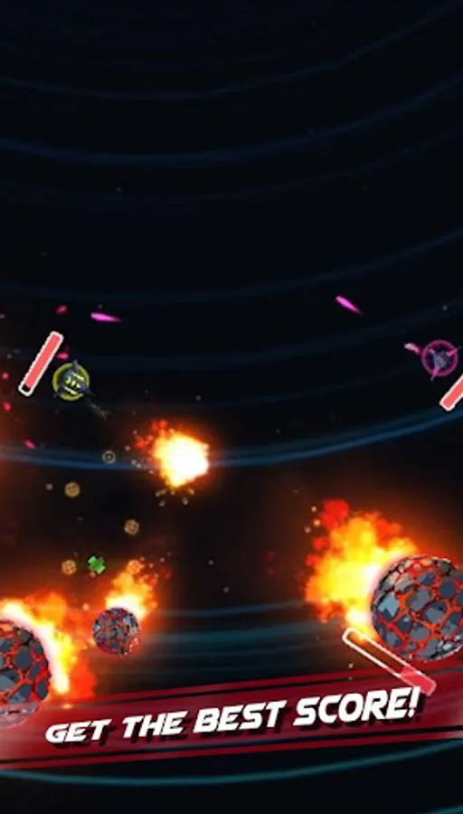 Play with your own style. You can shoot everything in your way, crash anything that blocking you or just fly and steal the points that the other have gather. But your enemy is not only the other ships, you must look out and beware of the flying asteroid.