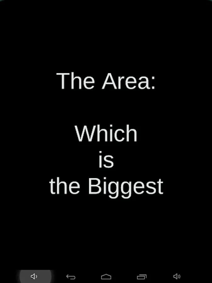 Game has mode with the two figures and mode with the three figures. In both modes is only one figure has the biggest area. Game has a few figures: triangle, quadrangle, pentagon, hexagon, heptagon, octagon and round. It is a very simple geometric game. Let's try it!