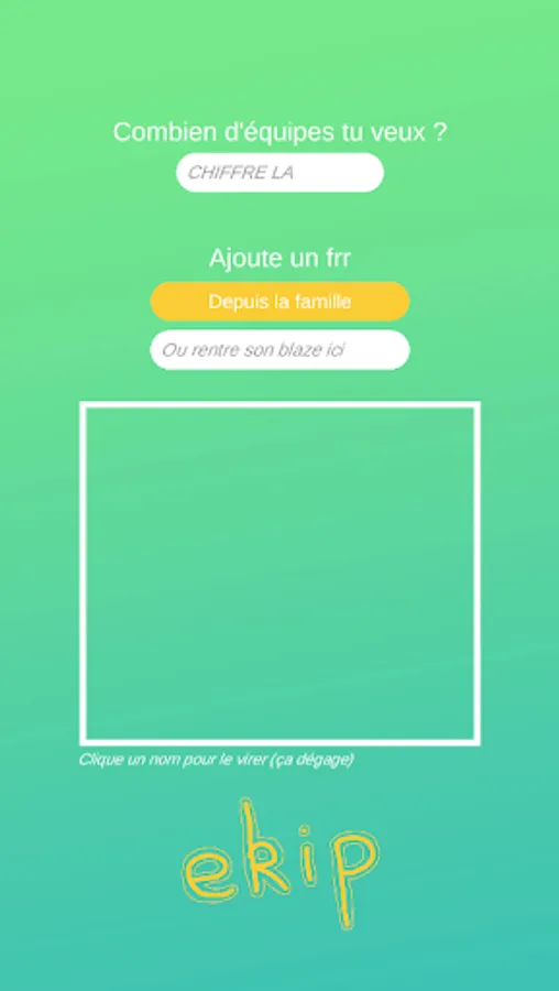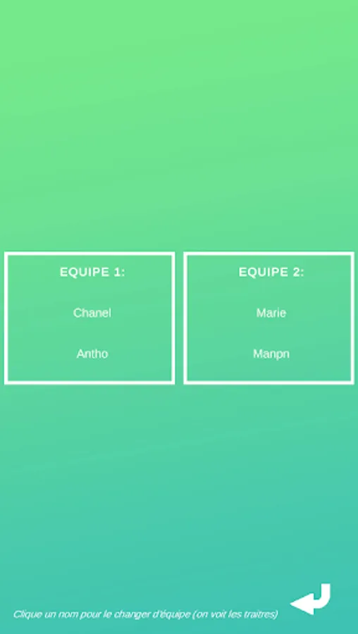 We choose the number of teams we want, we add the people we want (with a backup of the people returned in order to add them more easily the next time) and it's good.