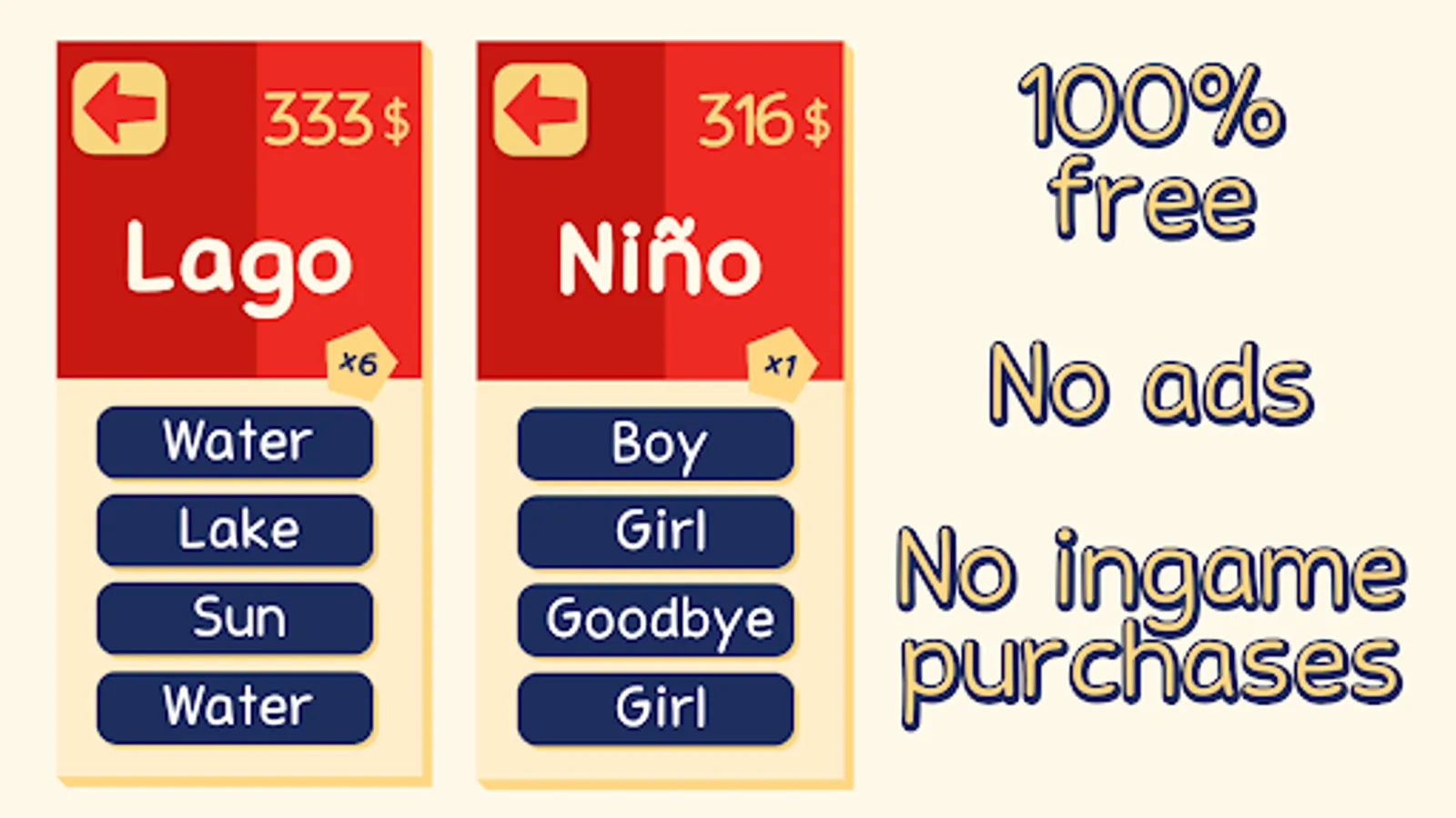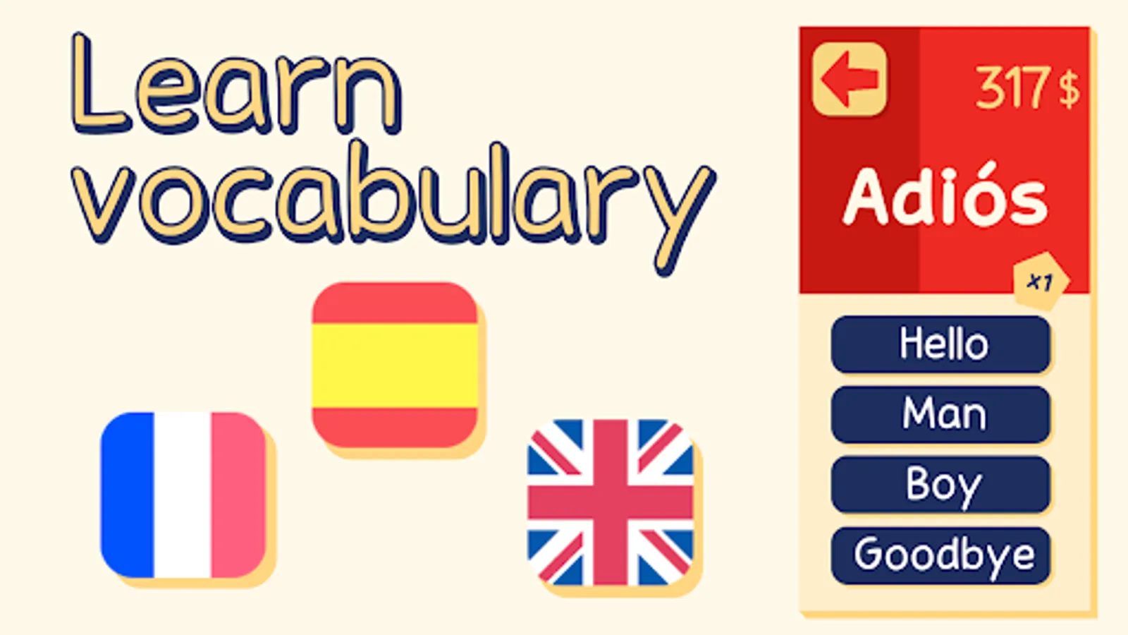 Learn vocabulary of diferent languages, try to get as many cash as you can!