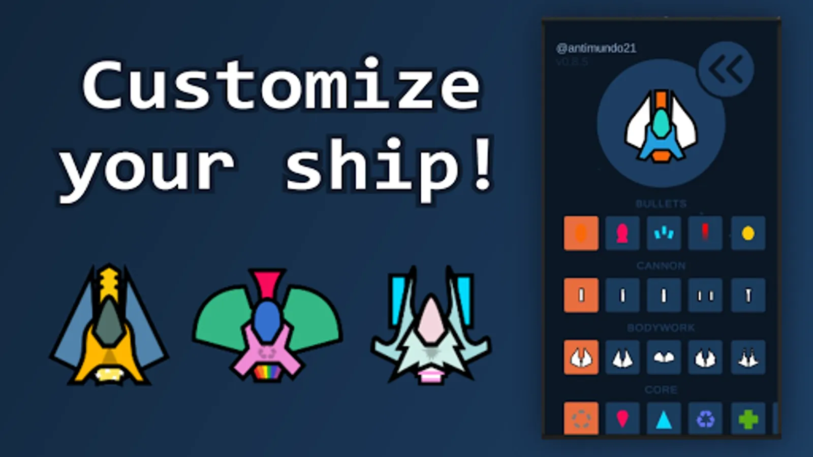 Customize your ship, and try to survive as long as you can. Try different combinations, and choose wisely the upgrades you make around your jurney.