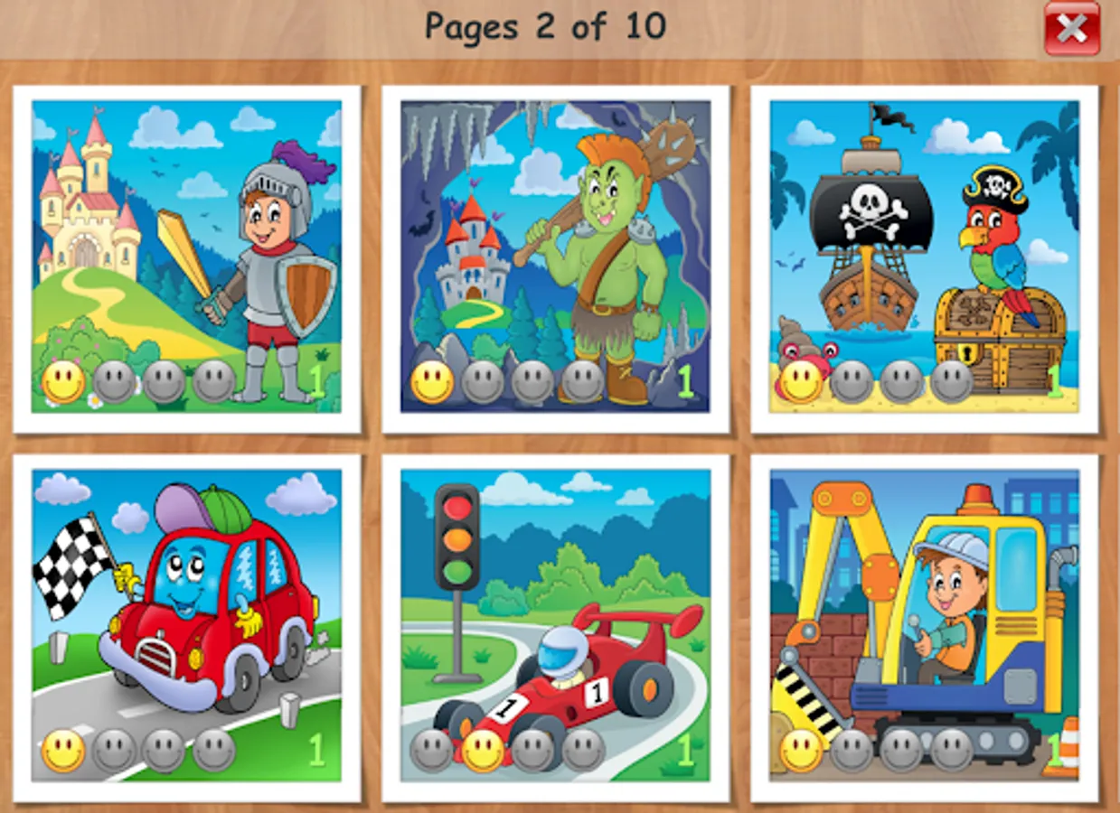 3) Choose the difficulty level of the jigsaw puzzle that suits your child best, we recommend you to start from level 1 and them go on to the next level that are of higher difficulty.