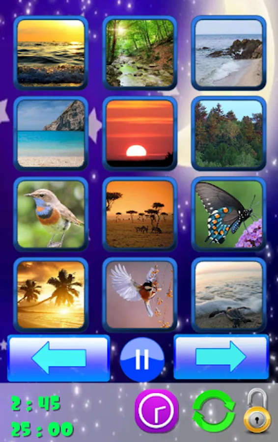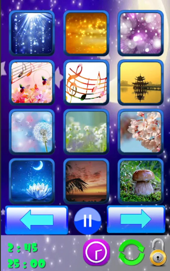 The Lullaby for babies offline app has a simple intuitive interface; even toddlers can use it easily. After opening the app, one finds 3 sections of songs: lullabies, classical music and sounds of nature. Each song has a small icon with lovely cartoon pictures or beautiful nature views.