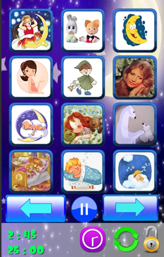 In Lullaby songs for babies offline we have collected the most famous lullabies from Soviet cartoons and children's movies. These songs are full of with kindness and care!