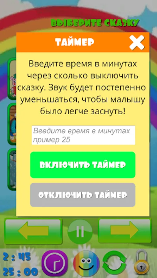 There is a fairy tale mute timer to make it easier for the child to fall asleep, let's say you have been driving for 25 minutes, during this time the sound will gradually decrease until it turns off completely.