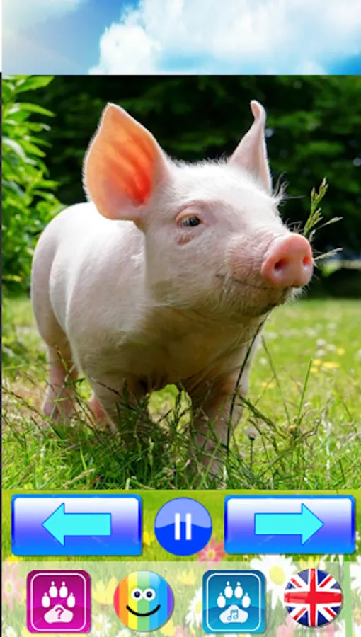 Animals Sounds: lion, elephant, bear, dog, cat, pig, cow, wolf, fox, hare, rooster, cuckoo, peacock, dolphin, panda, horse, parrot and others