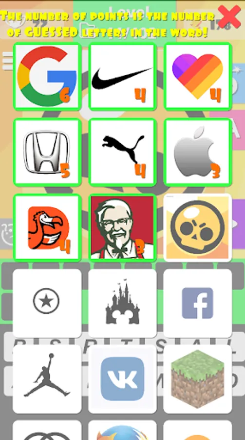 The game has many sections: cars, internet companies and junk food (chips, soda, etc.) and clothes :) Only modern logos that we see every day and know well!