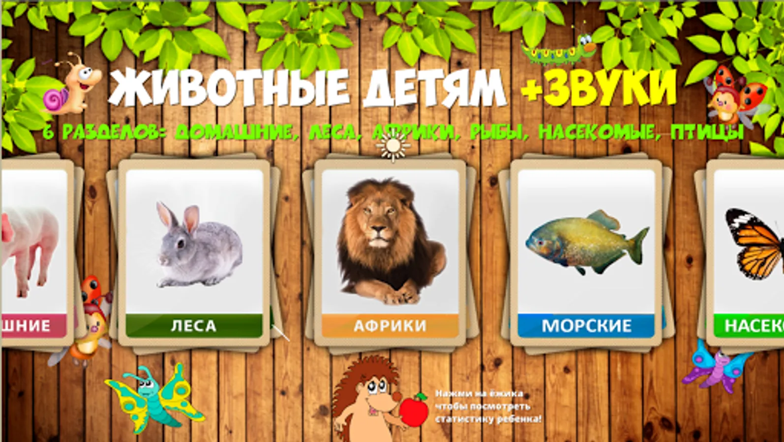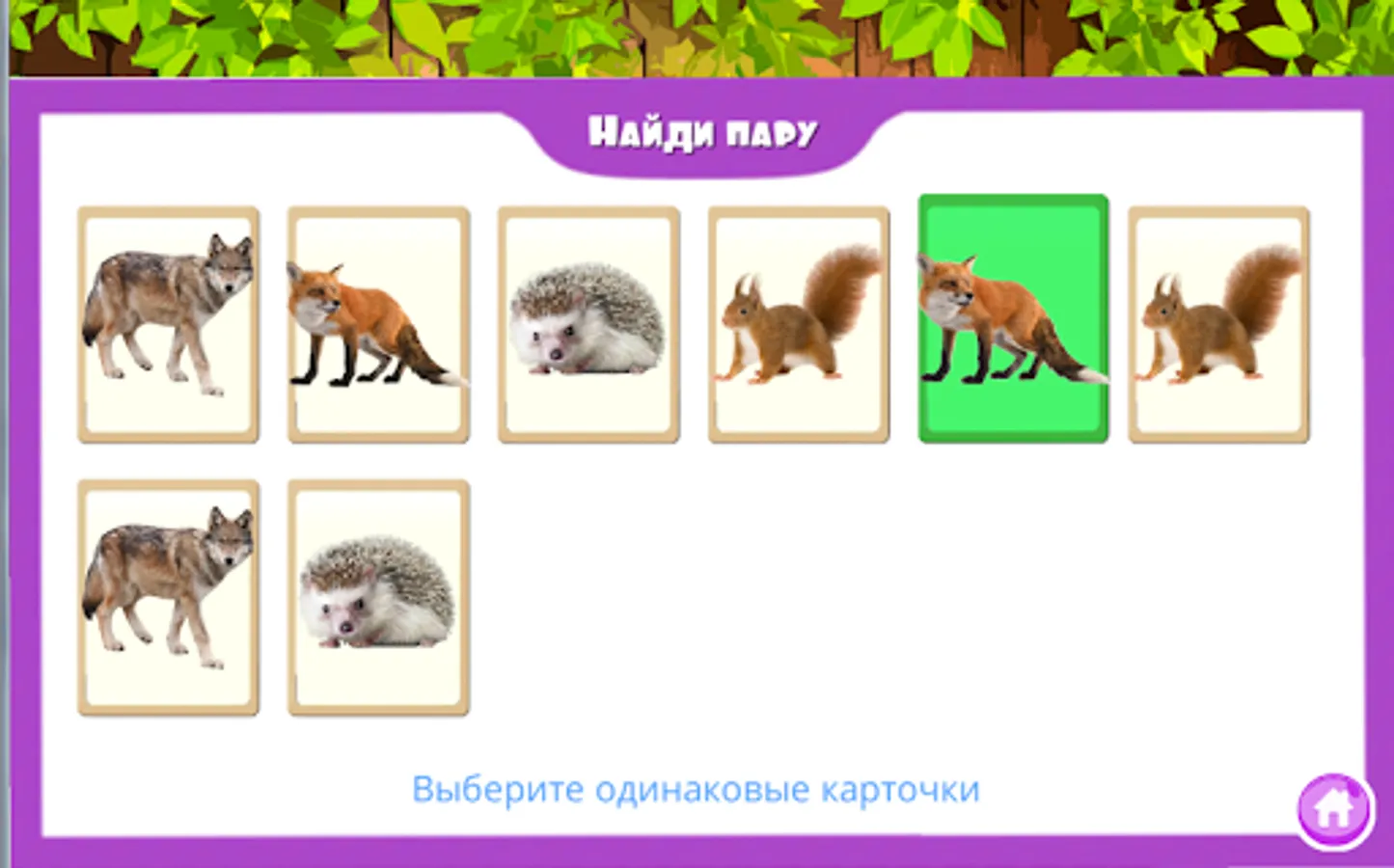 Animals for babies and children - made for my daughter! The game is completely free! Beautiful photos of animals and great sounds. Includes 3 sections: domestic animals, African animals, forest animals, birds, insects and fish. There are three games: learn animals, find a card and find a pair.