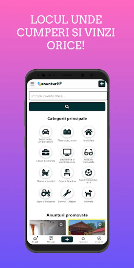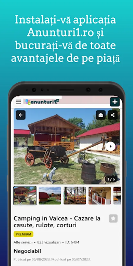 Fii cu un pas inainte, instalați-vă aplicația Anunturi1.ro și bucurați-vă de toate avantajele de pe piață direct de pe telefonul tău mobil.
