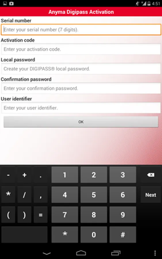 Mobile application which can generate One Time Passwords necessary for BRD Anyma Online Trading functionalities.