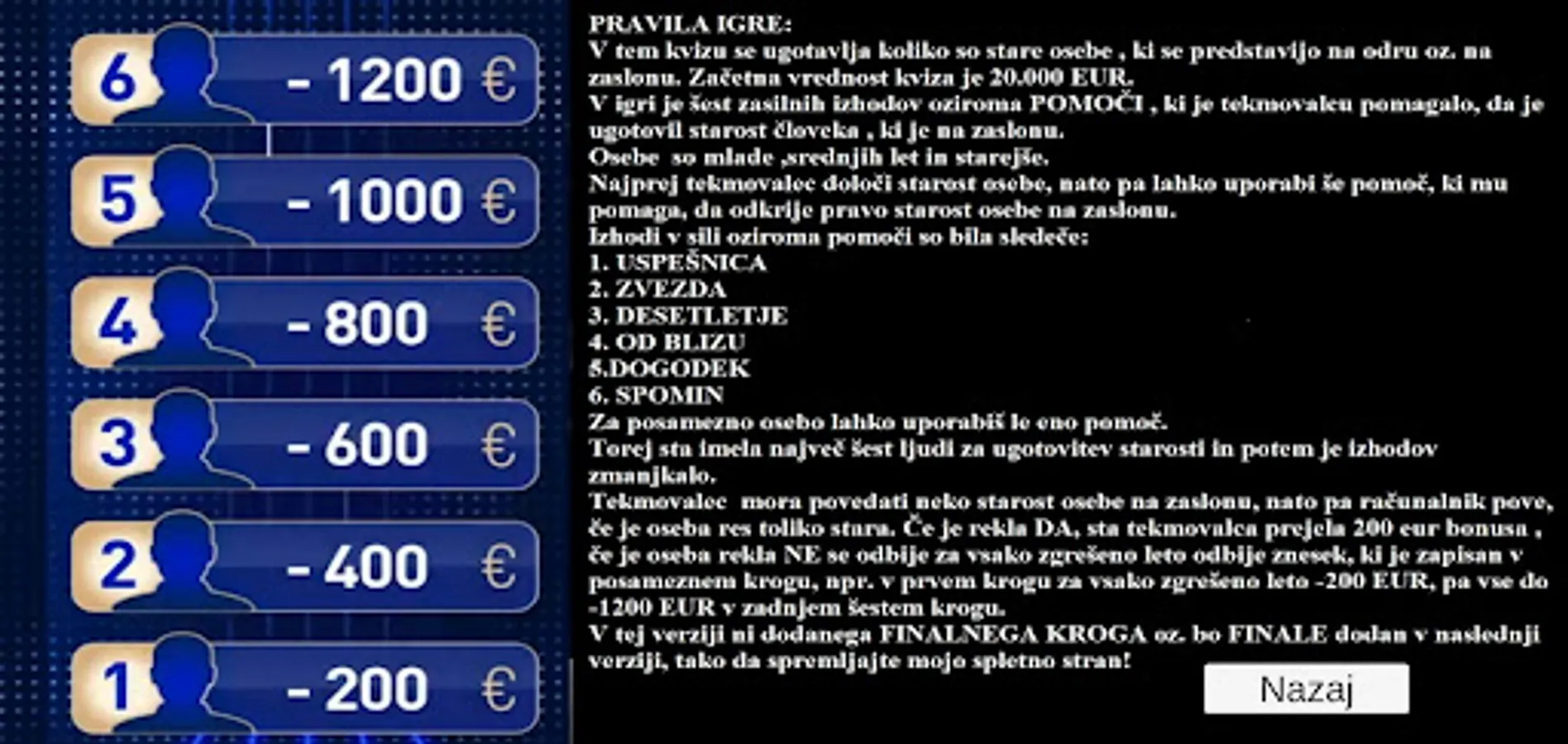 Years are a sensitive topic. Test your knowledge of guessing years and win the grand prize of € 20,000 + € 6 * € 200. The application is created in order to test your knowledge and be accurate in guessing the years.