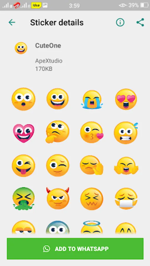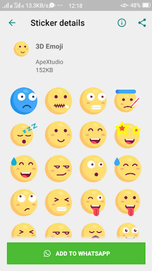 Big Emoji Stickers is collection of big or large emojis that you can send using Whatsapp.