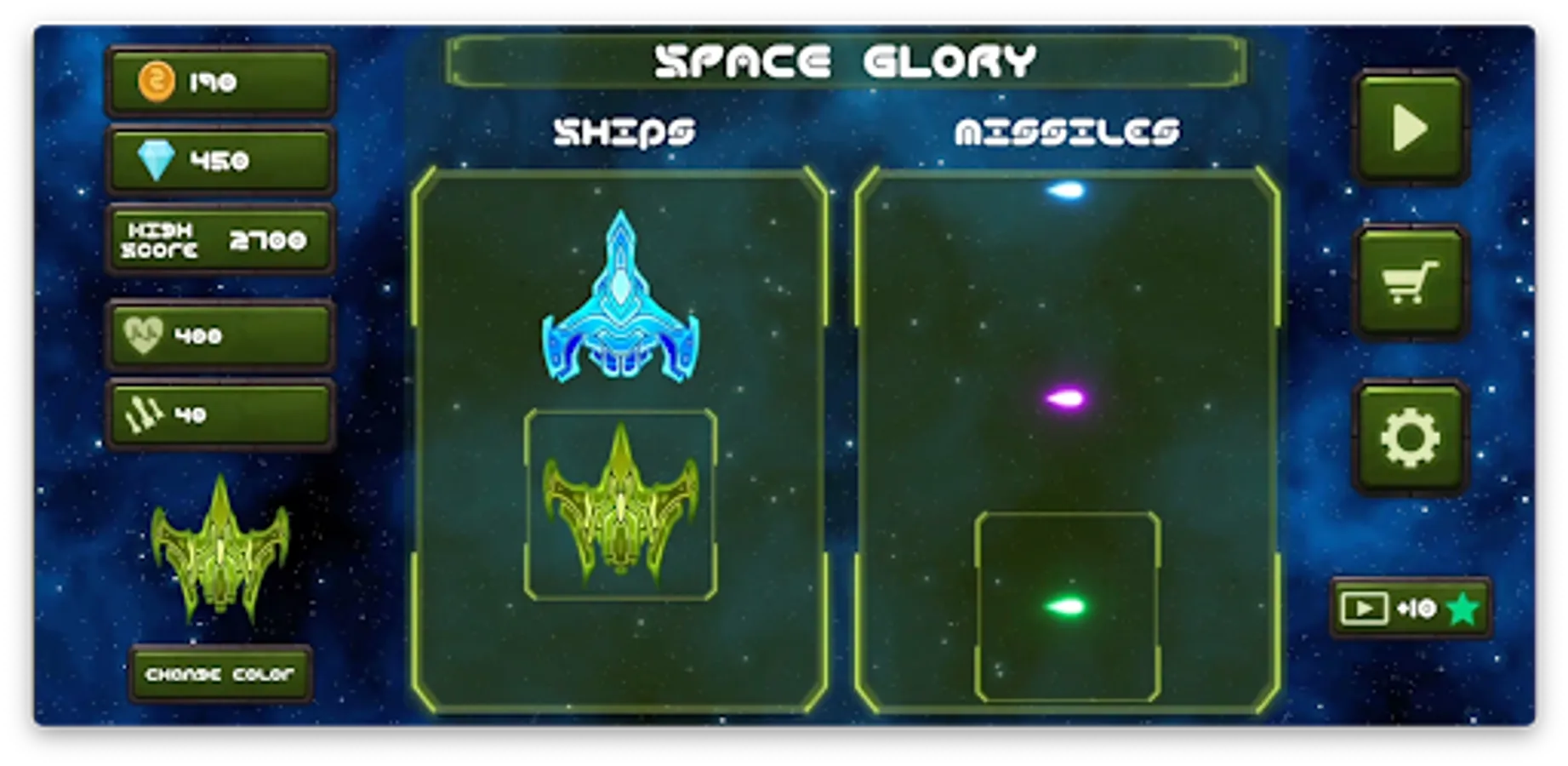 8. You can strengthen yourself by buying new ships and lasers from the market with the coins and gems you collect.