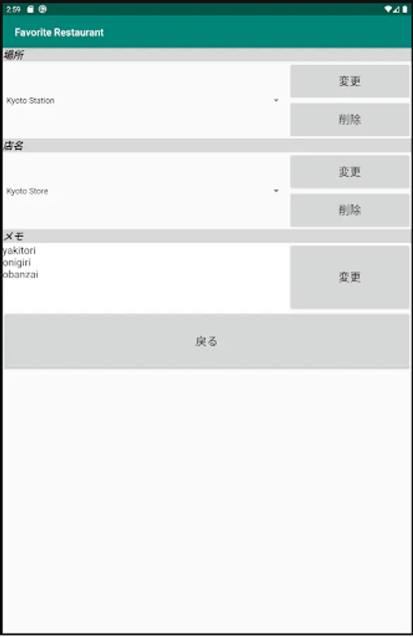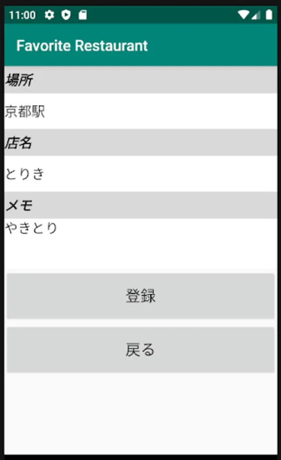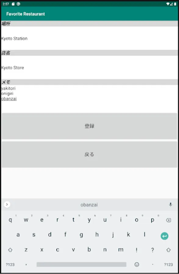 [Registration example] Location: Kyoto Station Name: 123 Memo: Meat is ◎