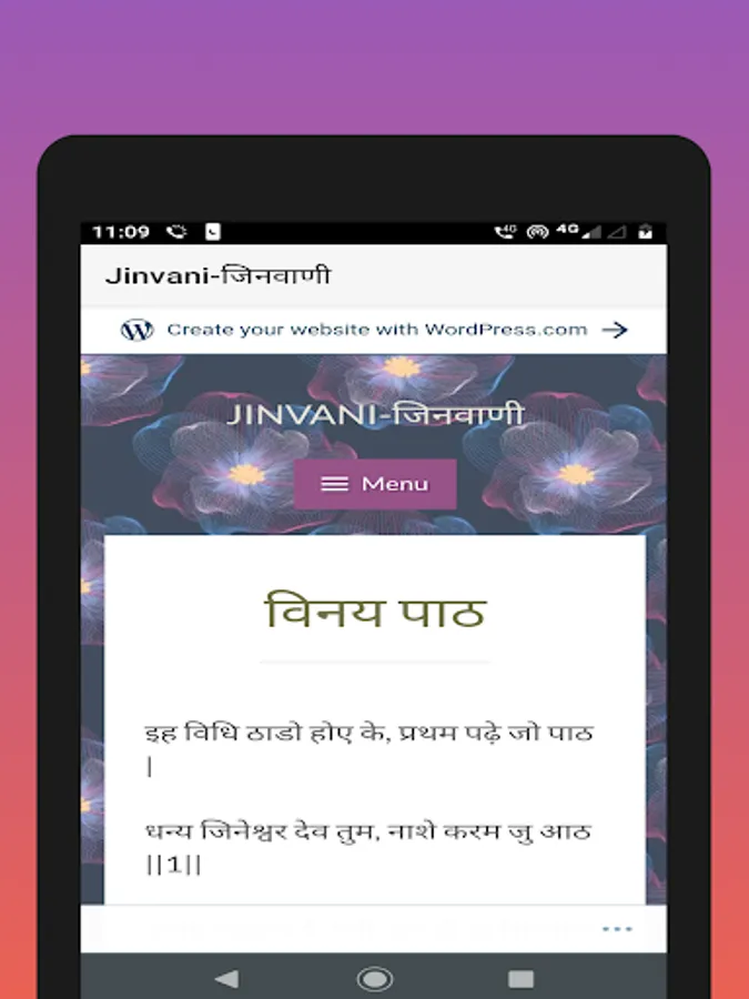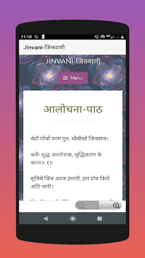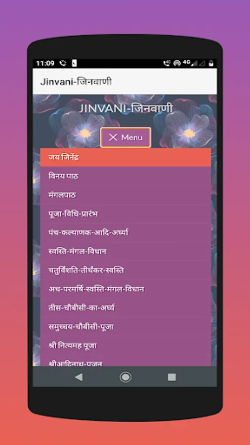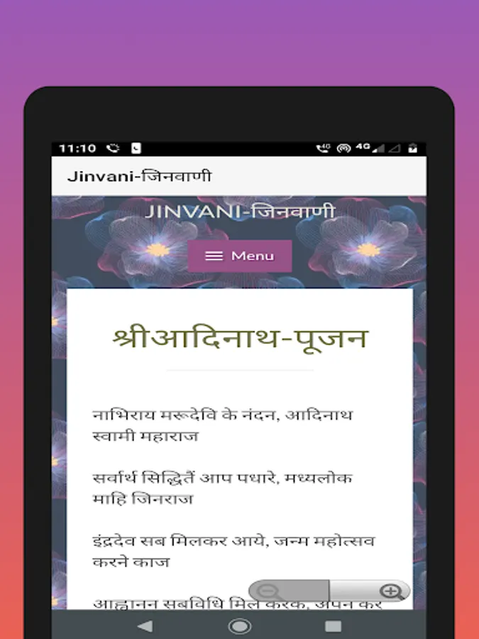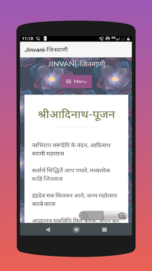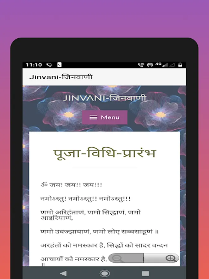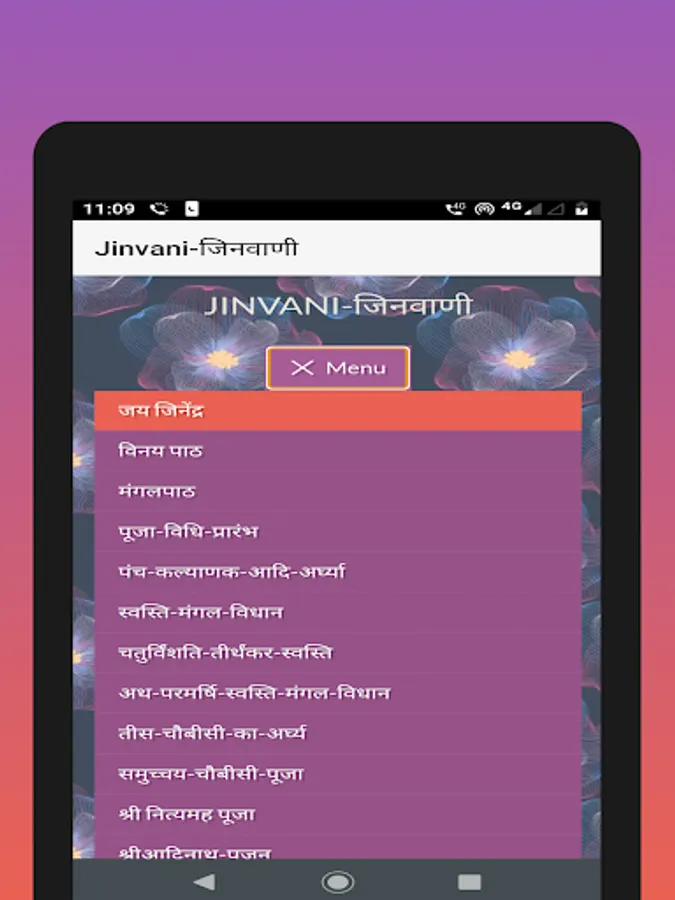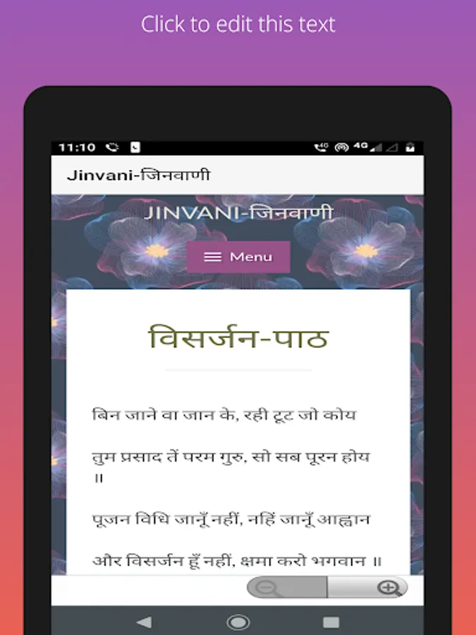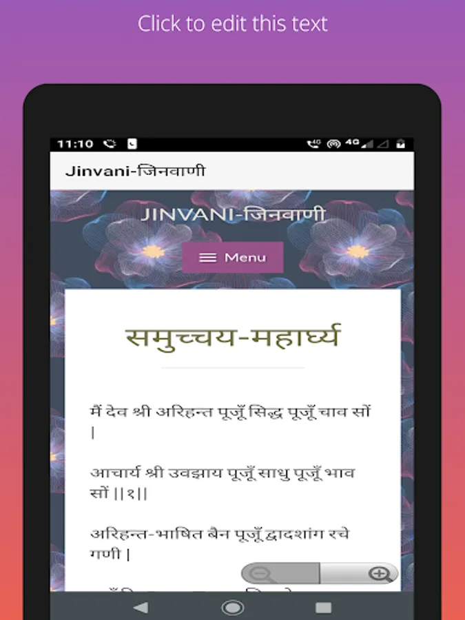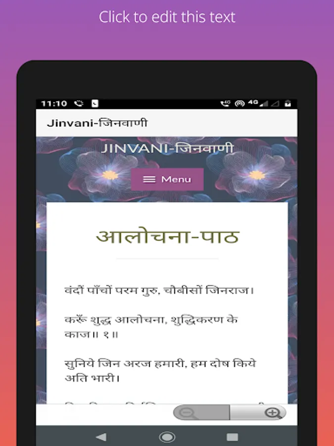 यह एप्लिकेशन ऑनलाइन जैन धर्म की पवित्र पुस्तक, जिनेन्द्र स्तुति,जिनभारती संग्रह उपलब्ध कराने का एक प्रयास है, ताकि लोग स्वतंत्र रूप से जिनेन्द्र देव की वाणी से प्रेरित होकर पढ़ सकें और सीख सकें।