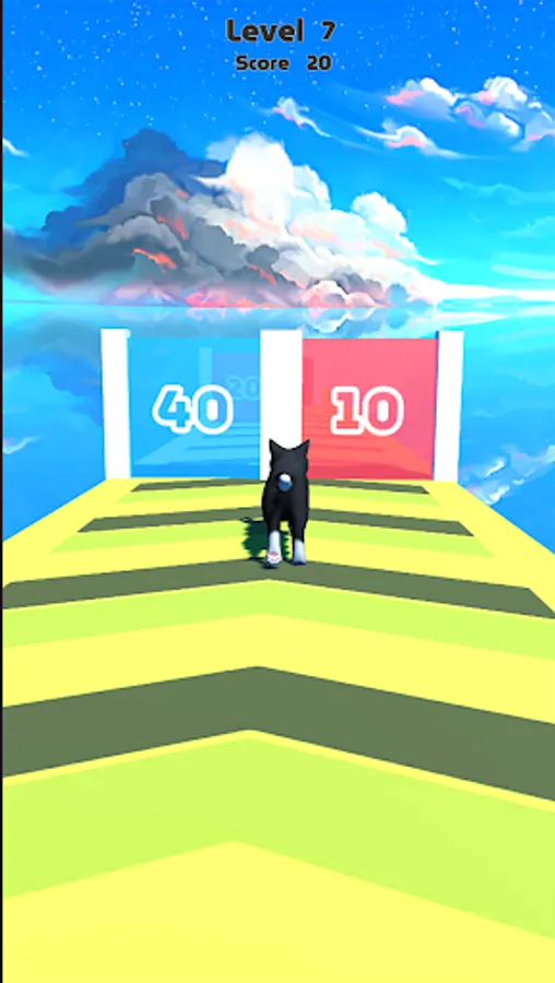 Experience the thrilling size-changing mechanics as the cat touches walls of different sizes.