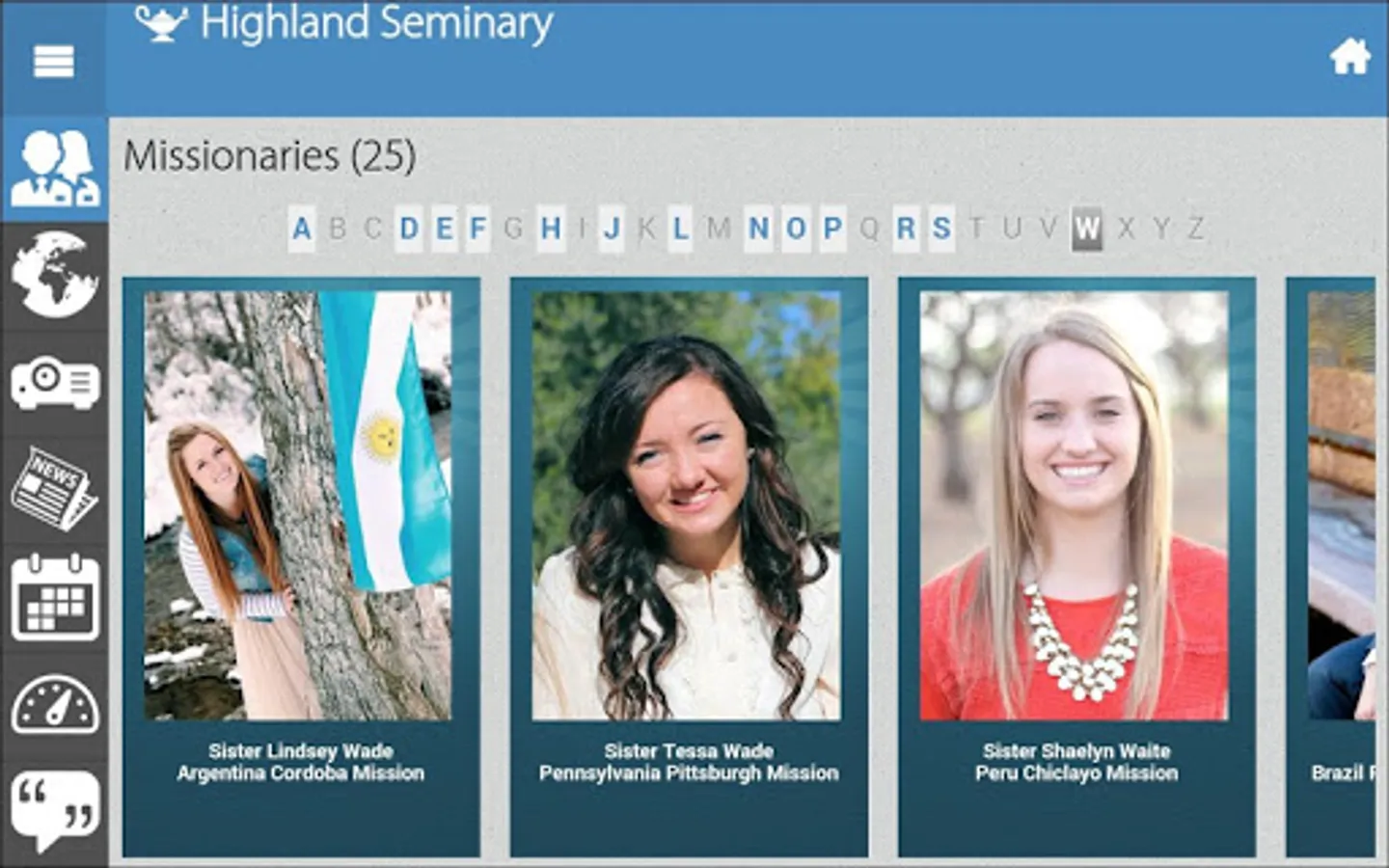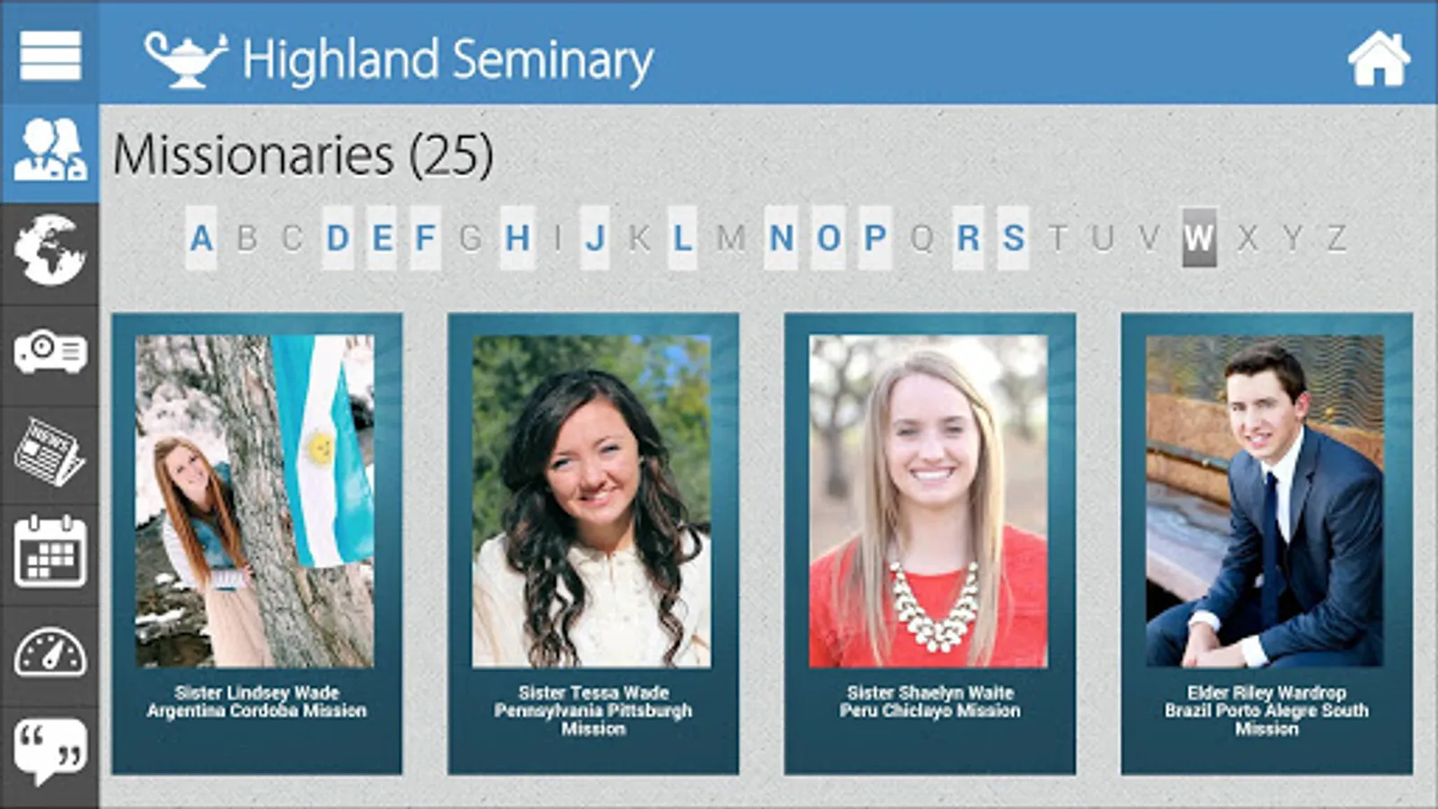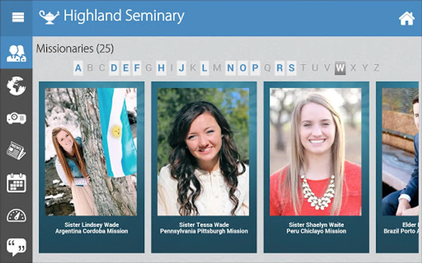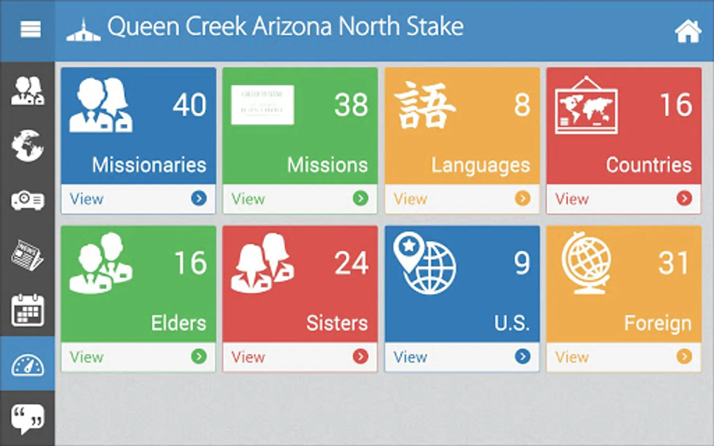 The "Missionary Display" is an interactive app that organizes and presents the digital pictures, maps, stories, and experiences of LDS missionaries serving around the world and highlights their missionary service.