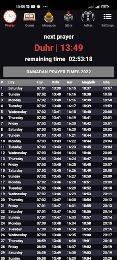 - Calendar imsakiat ramadan, the schedules of ramadan 2022 with the possibility of adjusting the start date of the month of ramadan and the end date (eid fitr).