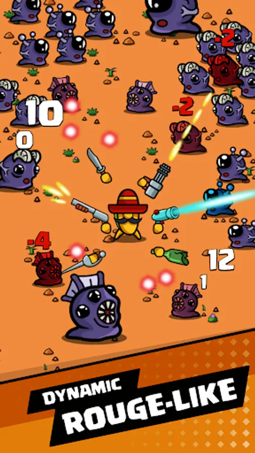 Brotaco Mobile Brotata Survive is a role-playing game, shooting, hand-to-hand combat, survival for a while, an adventure game with elements of roguelite.