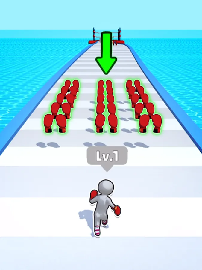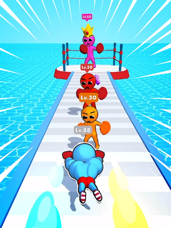 The path is long, many enemies stand in your path. But all obstacles only serve to make you stronger! Charge straight into your enemies, punch them in their dumb faces and watch your muscles swell with new power. Keep going, keep punching, keep winning, keep growing, until you reach the Boss, the King, at the end of the level… he's the strongest of them all, to be able to beat him you'll need to have beaten all who came before him. You'll only get one shot, can you knock the crown from his head?
