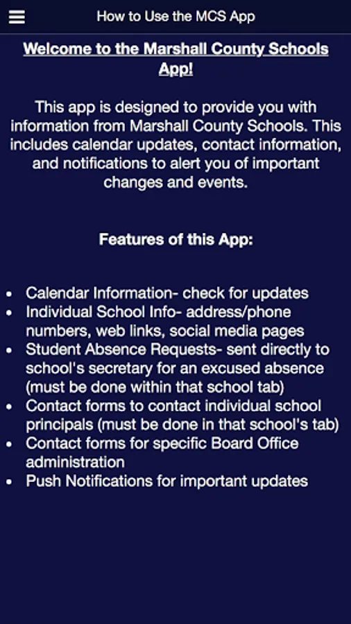 An informational app for the Marshall County School district in West Virginia