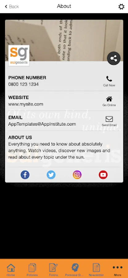 An app about Sui Generis International, a composites manufacturing business based in Essex.