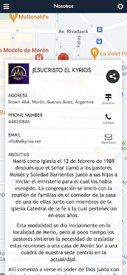 Nació como iglesia el 12 de febrero de 1989 después que el Señor llamó a los pastores Moisés y Soledad Barrientos junto a sus hijos a iniciar el ministerio para el cual los había escogido. La congregación se inició con la reunión de familias en el comedor de la casa de una de ellas junto con miembros de la iglesia Catedral de la fe a la cual pertenecían en esos años. Esta modalidad se dio inicialmente en la localidad de Merlo, pero al poco tiempo los pastores sintieron la necesidad de trasladar estas reuniones a una casa de Morón Sur a una cuadra de nuestra sede central en la actualidad. Allí comenzó a verse el poder de Dios junto con el hambre y la necesidad de conocer más de Él. En ese momento, eran solo diez personas las que se reunían allí cada semana para buscar la presencia de nuestro Dios. Al poco tiempo el número de miembros empezó a crecer y con una carpa prestada, se desarrollo la primera campaña de evangelismo del ministerio en el terreno donde hoy está construido nuestro templo central. Entonces, en un humilde barrio, llamado San Francisco en Morón Sur, Dios comenzó una obra sobre natural, se comenzaron a ver milagros, Dios, sanando y liberando vidas. Todo a partir de ese momento fue crecimiento. Llegamos a un acuerdo con el dueño del terreno para comprarlo y Dios empezó a proveer. Y junto a la iglesia naciente y al misionero Ron Pitts y algunos grupos de hermanos llegados de Norteamérica, comenzaron a construir las primeras paredes del templo del Ministerio Jesucristo el Kyrios. El Señor en ningún momento nos dejó. Y pudimos ver su mano sosteniéndonos, aun en momento difíciles. La visión de los Pastores Barrientos, siempre fue alcanzar la zona oeste para Cristo. En pos de eso el ministerio se expandía, de tal forma que tuvieron que comprar los terrenos traseros y laterales para seguir ampliando la iglesia, dado que la gente no cabía. Dios abrió las puertas en distintos medios de comunicación. Se comenzó con un programa de radio llamado Comunicando Vida en una emisora cercana, y desde sus inicios pudo verse que el Señor estaba en ese lugar. Luego se siguió con un programa de televisión con el objetivo de llegar a aquellas personas que no pueden acercarse a nuestro ministerio. Hoy, recientemente, pudimos comprar nuestra primera radio y estamos gestionando nuestro crecimiento en cuanto a los medios de comunicación. Dios siempre ha sido fiel. Siguiendo con esta visión de alcanzar a los necesitados, el 24 de junio del año 1998 comenzaron a desarrollarse reuniones en un edificio de Morón centro, dentro de una galería comercial. Dios siguió respaldando su obra y la gente llegó en busca del mensaje de salvación. Luego este lugar también quedo pequeño y tuvimos que mudarnos a tres cuadras de allí. A un lugar emblemático de la ciudad de Morón pues allí por muchos anos funciono aguas argentinas, hoy para la gloria de Dios se ha podido comprar el 50% de la propiedad que tiene cuatro pisos. Hoy después de 21 años de sus inicios. El ministerio Jesucristo El Kyrios es uno de los más representativos de la Unión de las Asambleas de Dios en la Zona Oeste del gran Buenos Aires, y el crecimiento ha sido notorio Con más de 2000 miembros sirviendo a Cristo en sus dos sedes, y diez familias de misioneros en varios países, varios anexos ubicados en Pontevedra, Merlo, Corrientes Capital y San Antonio de Areco y Siguiendo en la búsqueda de alcanzar vidas para Cristo.