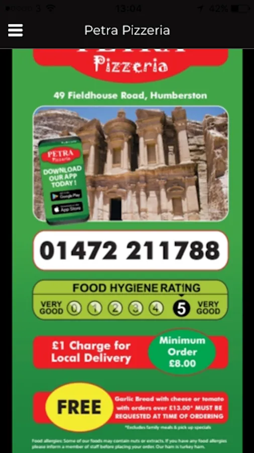 Petra Pizzeria - based in Humbeston, Grimsby. We offer a wide selection of pasta, kebabs, jack potatoes, burgers and deserts to suit all tastes and preferences. Order through our and get your food delivered to your door! Let us know what you think by completing our feedback survey.