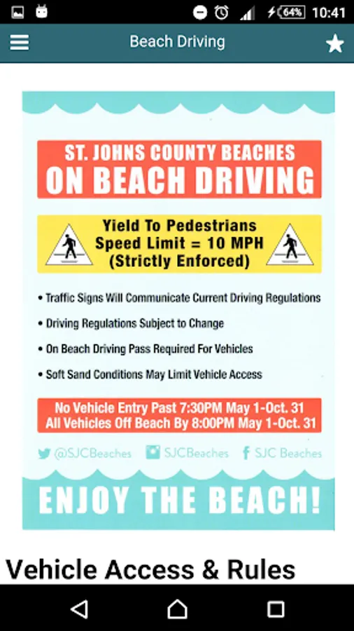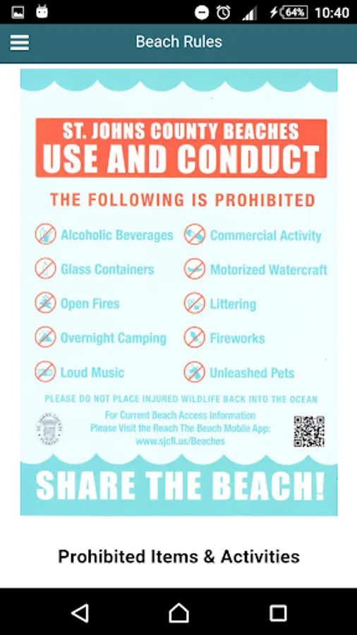 Reach the Beach with the SJC Beaches app! St. John County beaches are some of the most beautiful in the world. This app provides convenient information that will help residents and visitors to enjoy their time on the sand including: